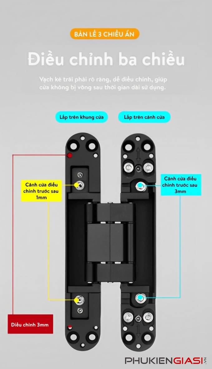 🔹 Điều chỉnh ba chiều: Phạm vi điều chỉnh ba chiều giúp dễ dàng điều chỉnh cửa để phù hợp với không gian và sở thích cá nhân.