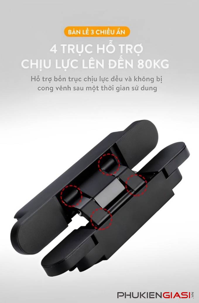 Bản lề được thiết kế âm thẩm mỹ, hạn chế gỉ sét và bền lâu.