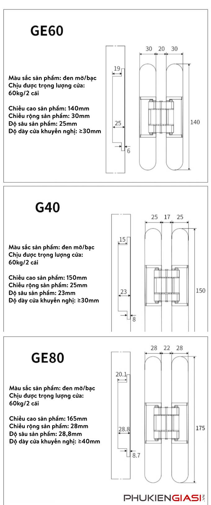 🔸 Chịu được trọng lượng cửa: 60kg, 40kg, 80kg