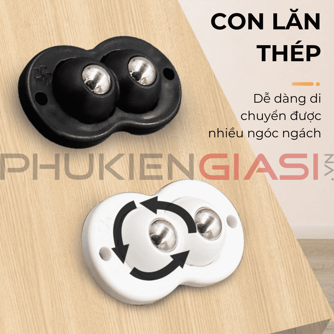 Phụ kiện giá sỉ xin hân hạnh được giới thiệu tới bạn một phụ kiện có thể giúp bạn di chuyển dễ dàng các nội thất nặng ký trong ngôi nhà của mình. Với thiết kế nhỏ gọn dễ sử dụng, Bánh xe mini xoay 3600 đế dán đa năng sẽ là một trợ thủ đắc lực trong việc thu xếp và sửa sang không gian sống và làm việc.