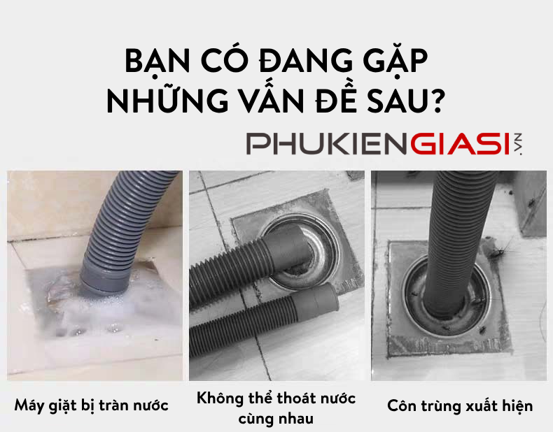 - Chống tràn cho đuôi xả máy giặt, đuôi xả nước bồn rửa
