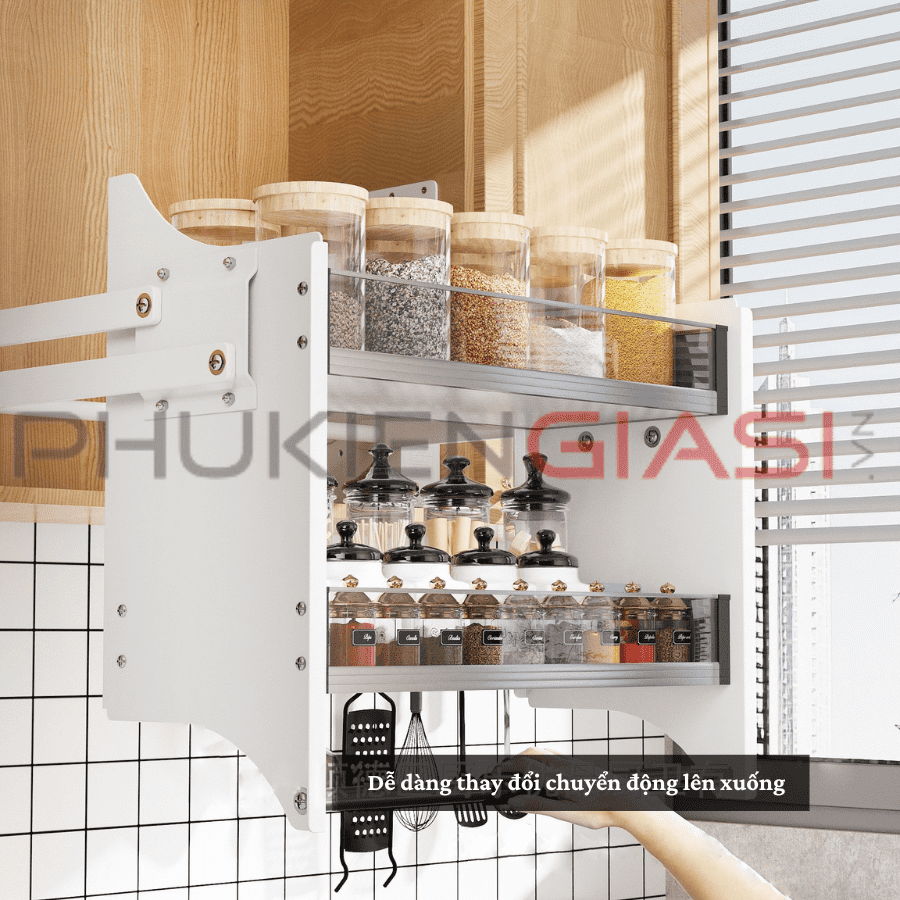 Không gian bếp núc quá chật chội khiến bạn ngán ngẫm mỗi khi vào bếp? Hãy để Phụ kiện giá sỉ giới thiệu cho bạn sản phẩm Bộ kệ đựng gia vị nâng hạ bằng hợp kim nhôm có thể sẽ trở thành giải pháp tiết kiệm không gian của bạn.