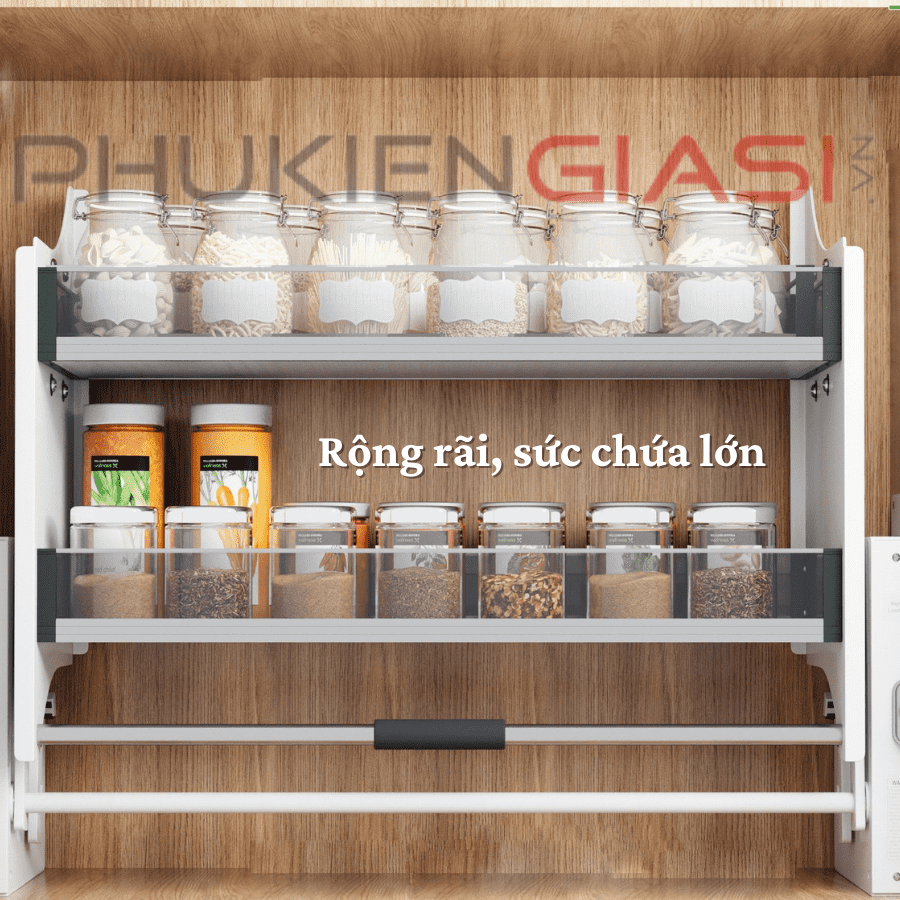 - Tên sản phẩm: Bộ kệ đựng gia vị nâng hạ