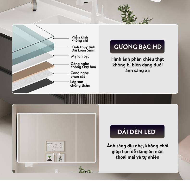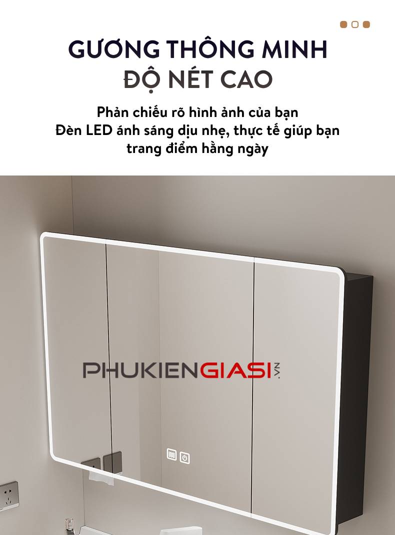 Bộ tủ gương Lavabo sau đây không chỉ tân trang không gian phòng tắm nhà bạn mà còn là sự lựa chọn hoàn hảo cho những ai đang tìm kiếm sự kết hợp giữa thiết kế hiện đại và tính năng thông minh khử sương tự động.