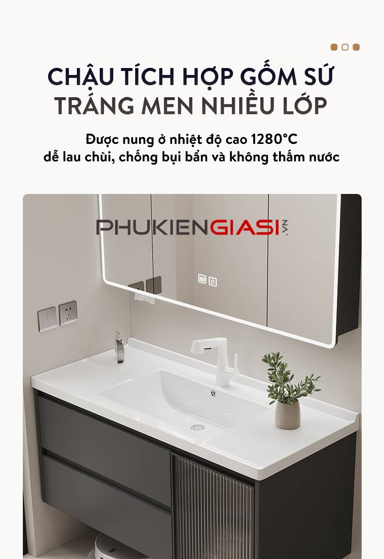🔹 Phần chậu sứ được nung ở nhiệt độ cao 1280°C dễ lau chùi, chống bụi bẩn và không thấm nước
