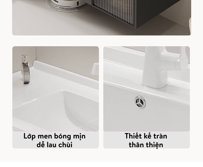 🔹 Vệ sinh dễ dàng bề mặt gương và chậu. Không sợ bụi bẩn bám dính