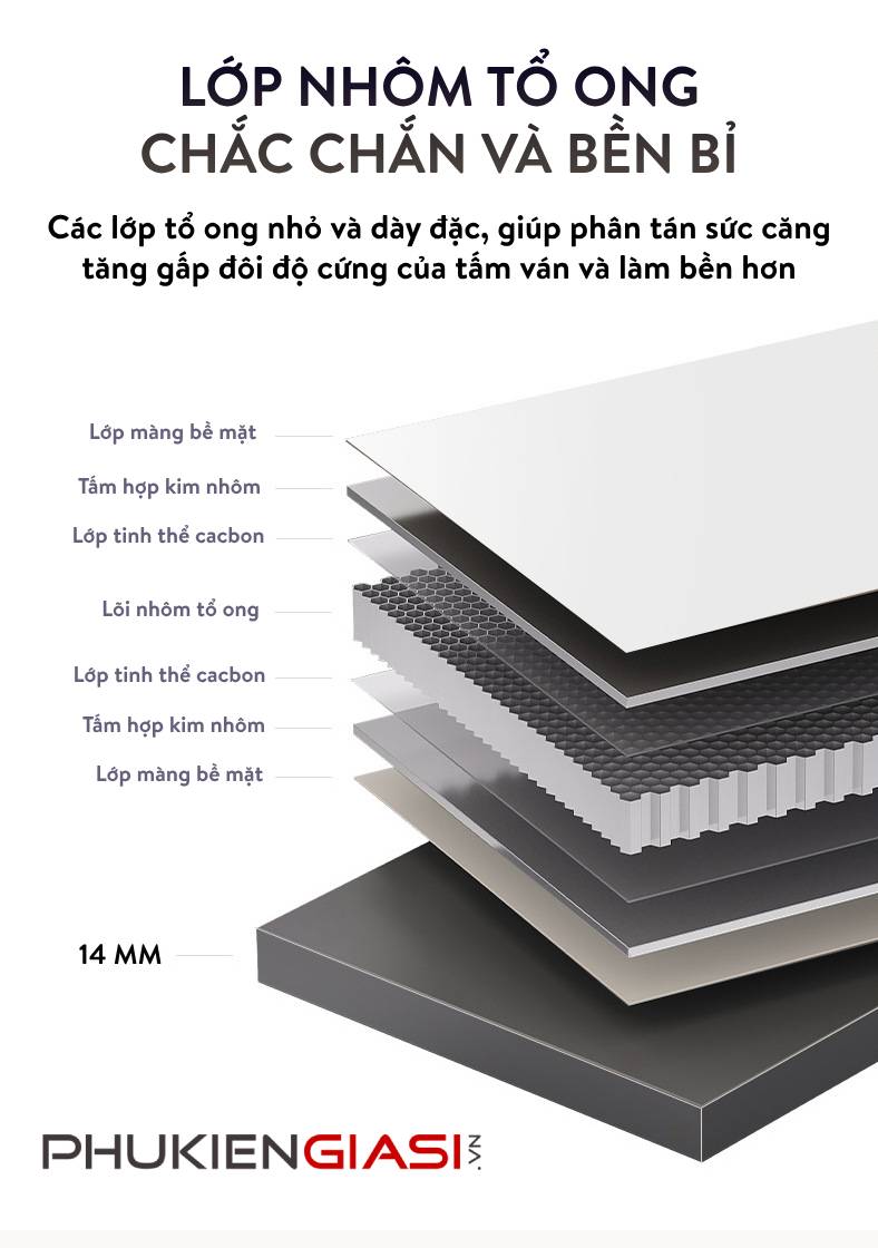 🔹 Chất liệu nhôm dày đặc, xếp chồng chắc chắn như lớp tổ ong