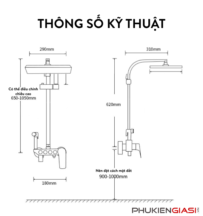- Chiều cao lắp đặt: Từ 90cm đến 100cm
