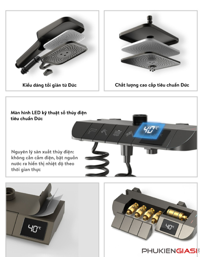 - Màn hình kỹ thuật số LED thủy điện của Đức: Màn hình này không chỉ mang lại tính thẩm mỹ mà còn cung cấp thông tin chính xác về nhiệt độ nước, giúp người dùng điều chỉnh nhiệt độ tắm một cách chính xác và dễ dàng.