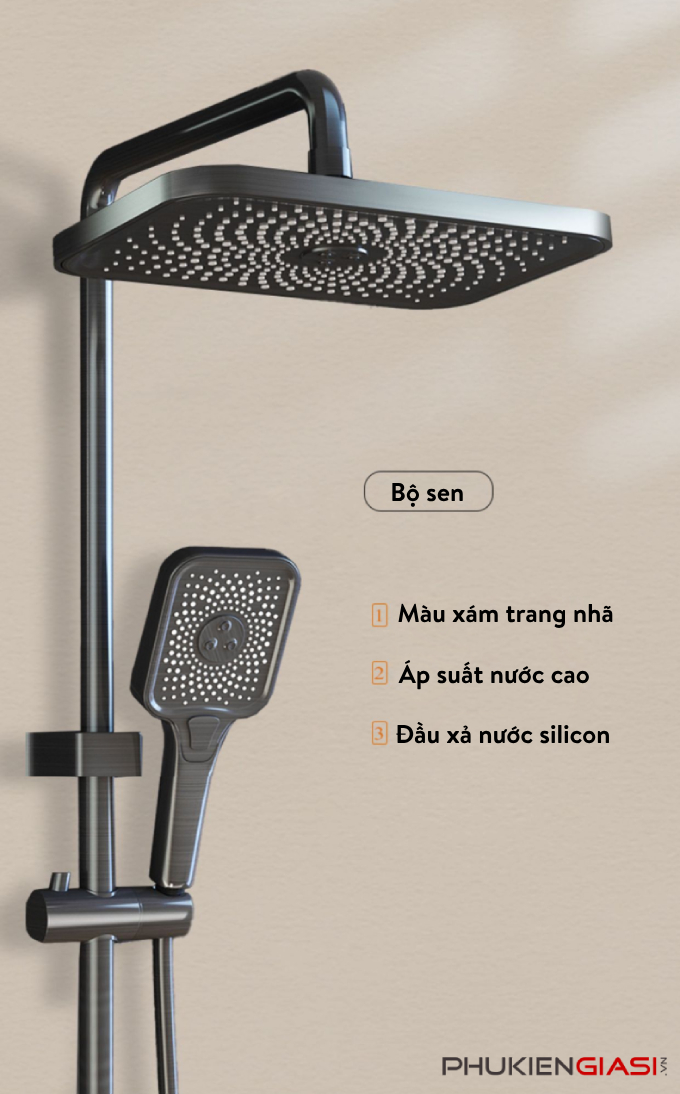 - 4 Chế độ xả nước: Xả từ sen cây, sen tay cầm, vòi xịt và xả nước từ kệ
