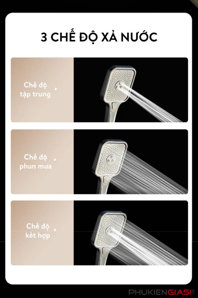 Với khả năng xả nước áp suất cao và có 4 chế độ xả nước khác nhau, và có thể điều chỉnh nhiệt độ và giữ nhiệt độ trong suốt quá trình tắm. Giúp bạn có trải nghiệm tắm thoải mái và sạch sẽ hơn với 3 kiểu xả nước của vòi sen cầm tay.