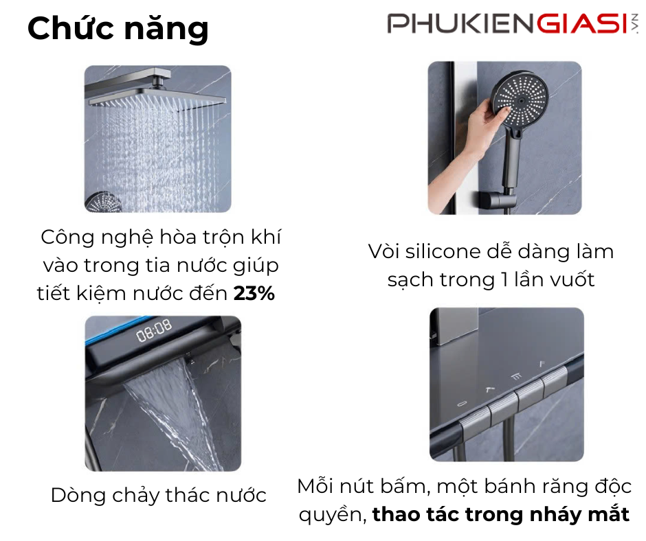 Khi tắm không chỉ là một hoạt động đơn giản hàng ngày, đó còn là không gian để ta thư giãn sau một ngày dài làm việc. Một căn phòng tắm với nhiệt độ nước được điều chỉnh phù hợp, ánh sáng xanh dịu nhẹ cùng với thiết kế thời thượng giúp căn phòng tắm chán chường ngày nào trở nên sang trọng và thoải mái hơn bao giờ hết. Chắc chắn sản phẩm của chúng tôi sẽ không làm bạn thất vọng. Hãy khám phá ngay bài viết Bộ vòi sen nóng lạnh thân Vuông màn hình LED trong bài viết dưới đây.