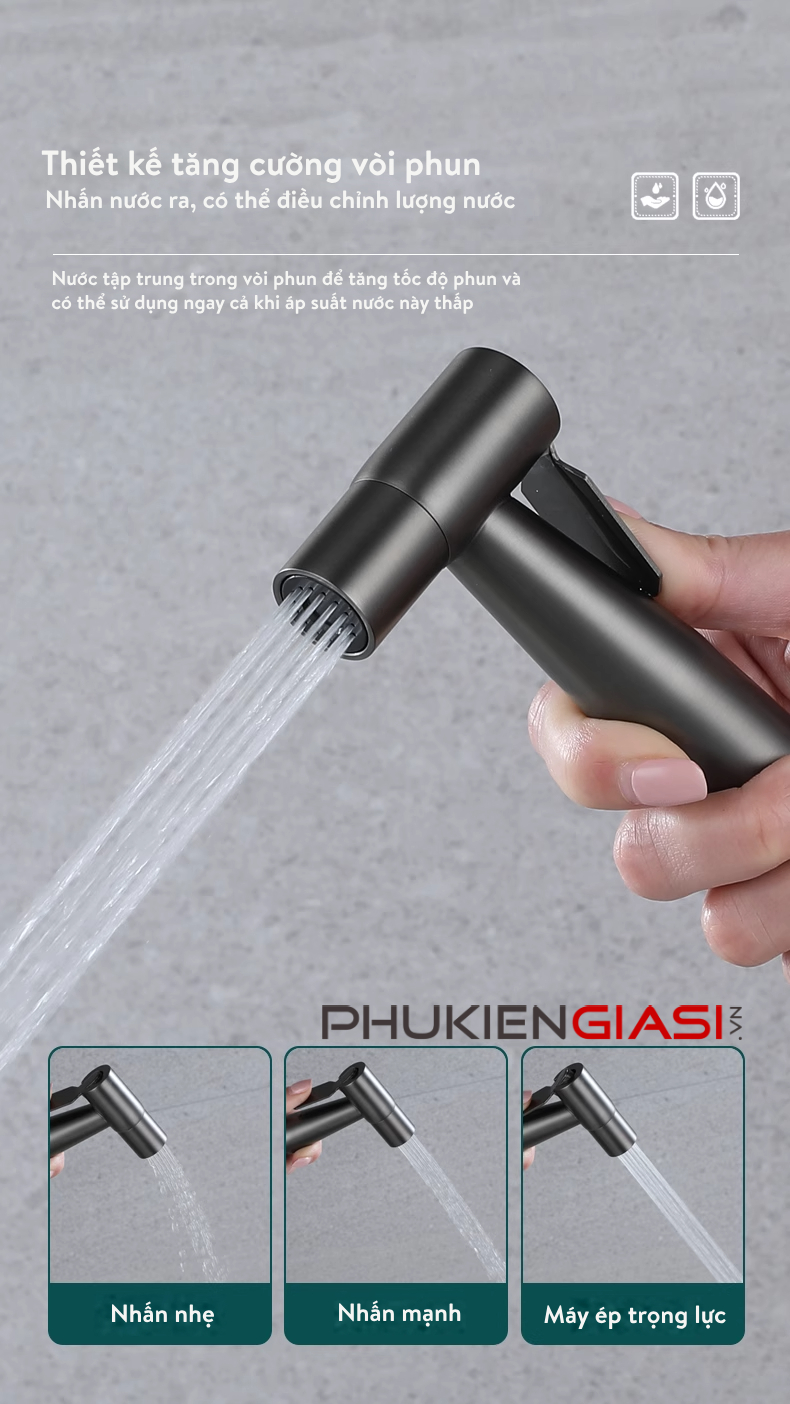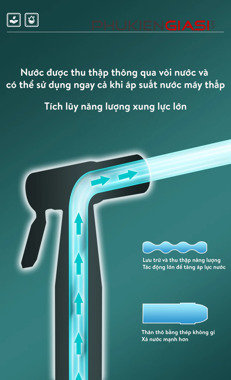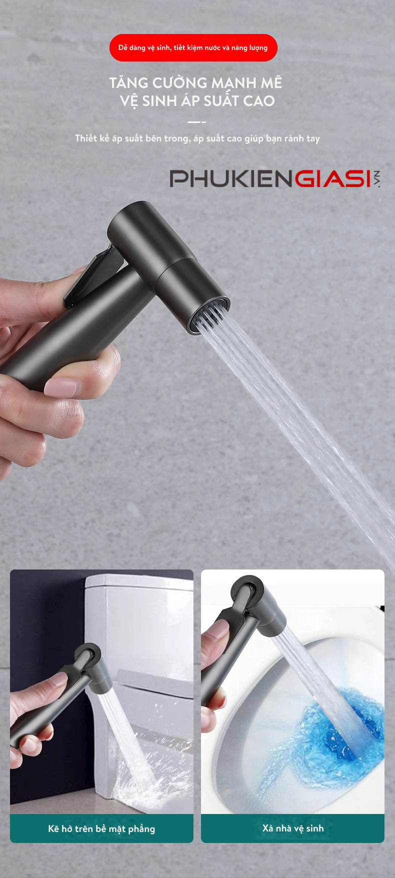 Bộ vòi xịt vệ sinh cao cấp này đi kèm với nhiều tính năng tiện ích. Đầu xịt được thiết kế tối ưu hóa dòng nước, giúp tiết kiệm nước mà vẫn đảm bảo hiệu quả vệ sinh cao. Ngoài ra, hệ thống van điều chỉnh áp lực nước linh hoạt giúp người dùng dễ dàng điều chỉnh theo nhu cầu sử dụng.