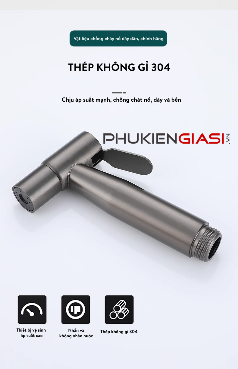 Bộ vòi xịt vệ sinh này được chế tạo từ thép không gỉ SUS304, một loại thép có độ bền cao, chống gỉ sét và chịu được môi trường ẩm ướt của phòng tắm. Sự lựa chọn chất liệu này không chỉ mang lại độ bền vững cho sản phẩm mà còn đảm bảo an toàn cho sức khỏe người dùng, bởi thép không gỉ SUS304 không chứa các chất độc hại.