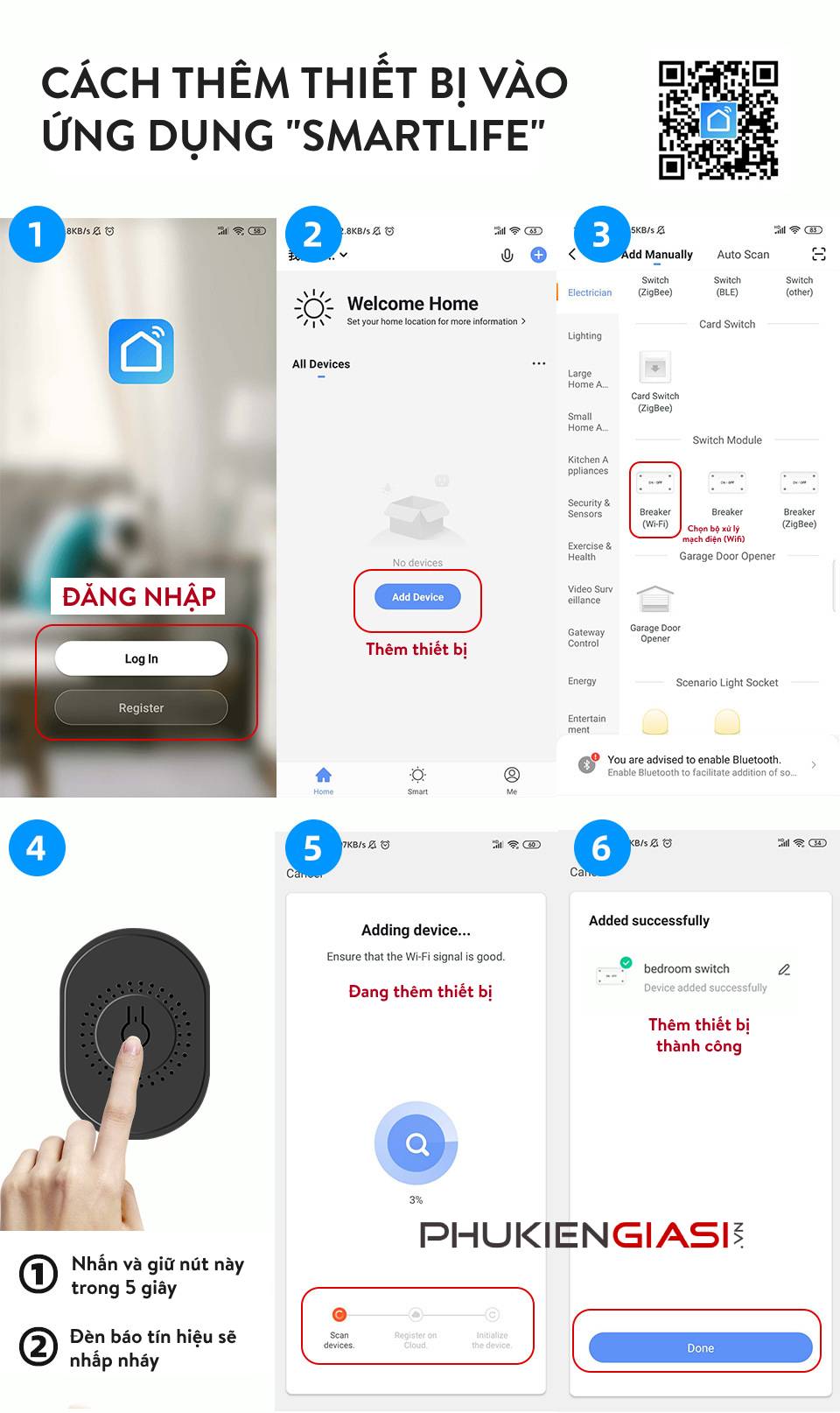 - Ứng dụng hỗ trợ: Tuya Smart / Smart Life