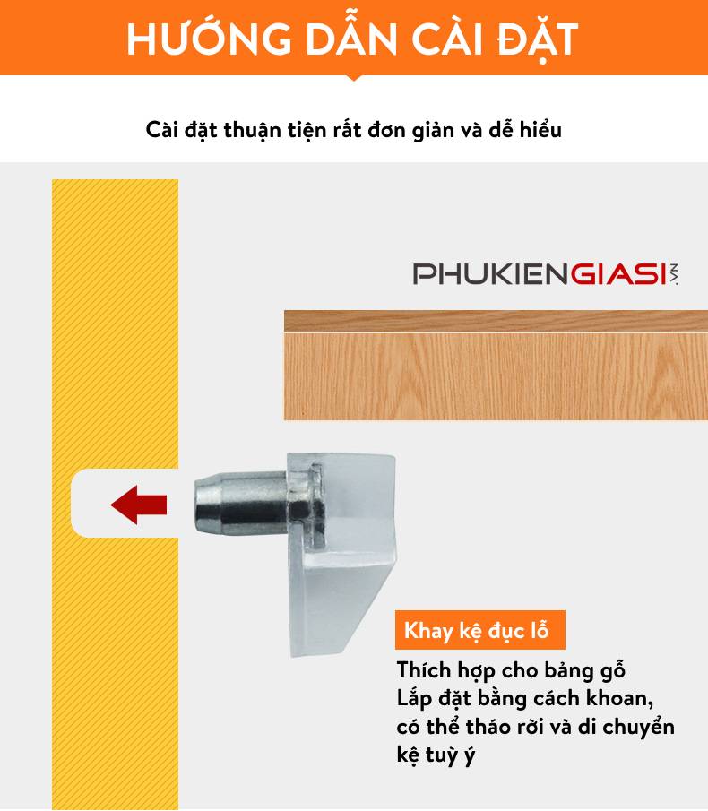 🔹 Dùng tay đẩy chốt đỡ vào lỗ khoan trước đó là có thể sử dụng được ngay