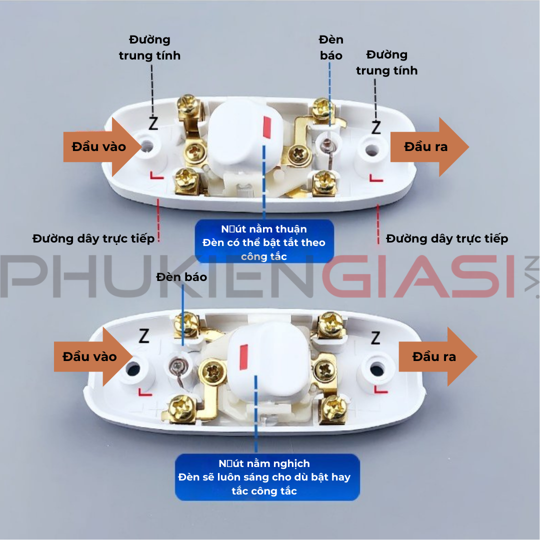 Tích hợp đèn báo giúp dễ dàng xác định vị trí công tắc khi trong điều kiện thiếu sáng.