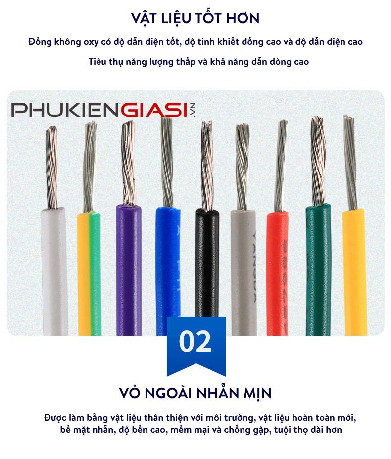 ✨ Lõi đồng nguyên chất: Với lõi đồng không oxy, dây cắm Dupont đạt được độ dẫn điện xuất sắc và giảm thiểu tối đa tổn hao điện năng. Độ tinh khiết cao của đồng còn giúp gia tăng tính ổn định trong suốt quá trình sử dụng.