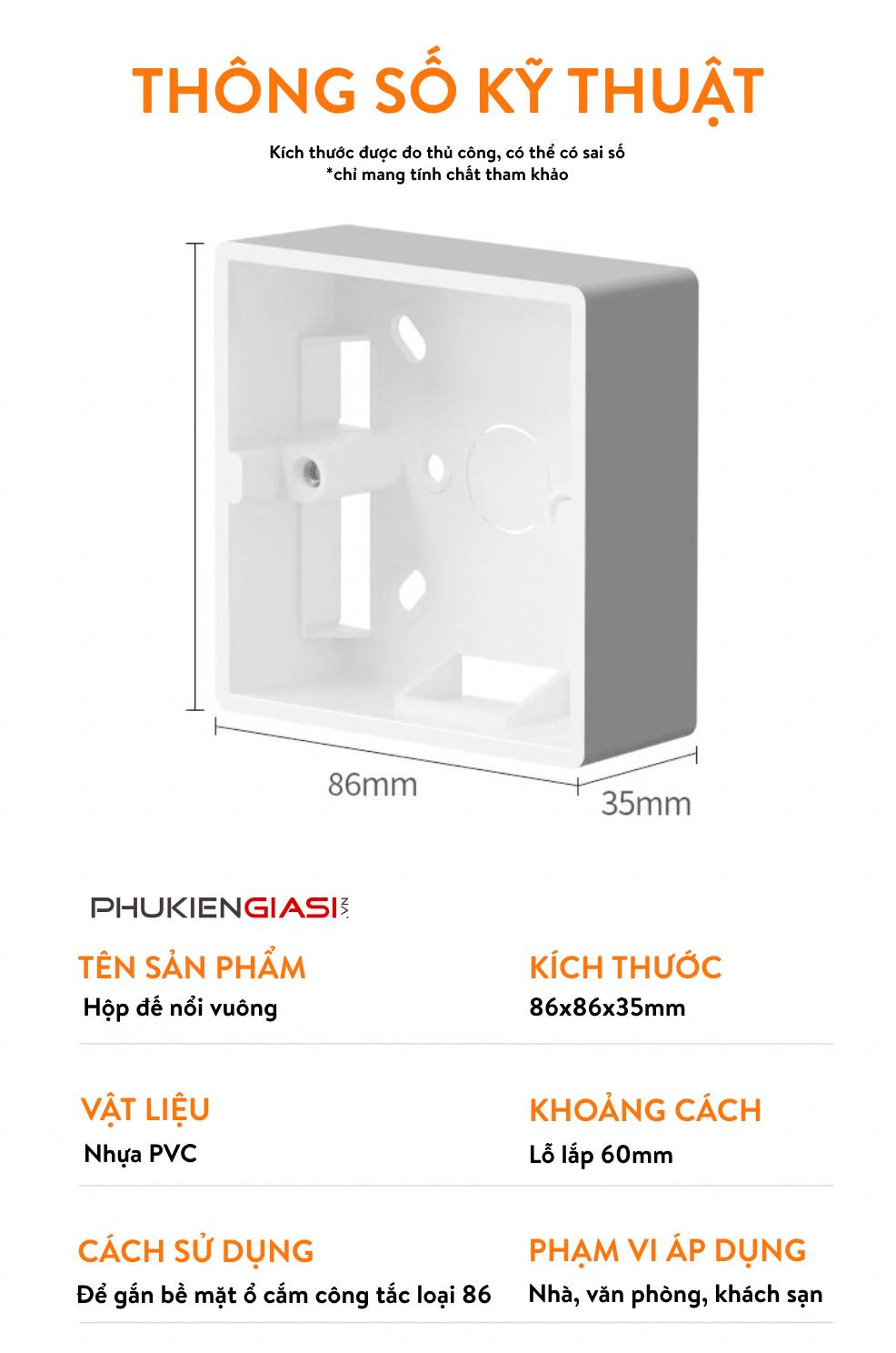 🔹 Tên sản phẩm: Đáy ổ điện nổi vuông 86 mm
