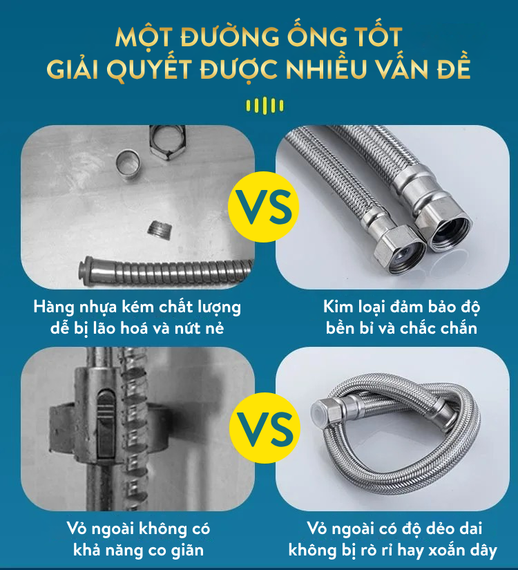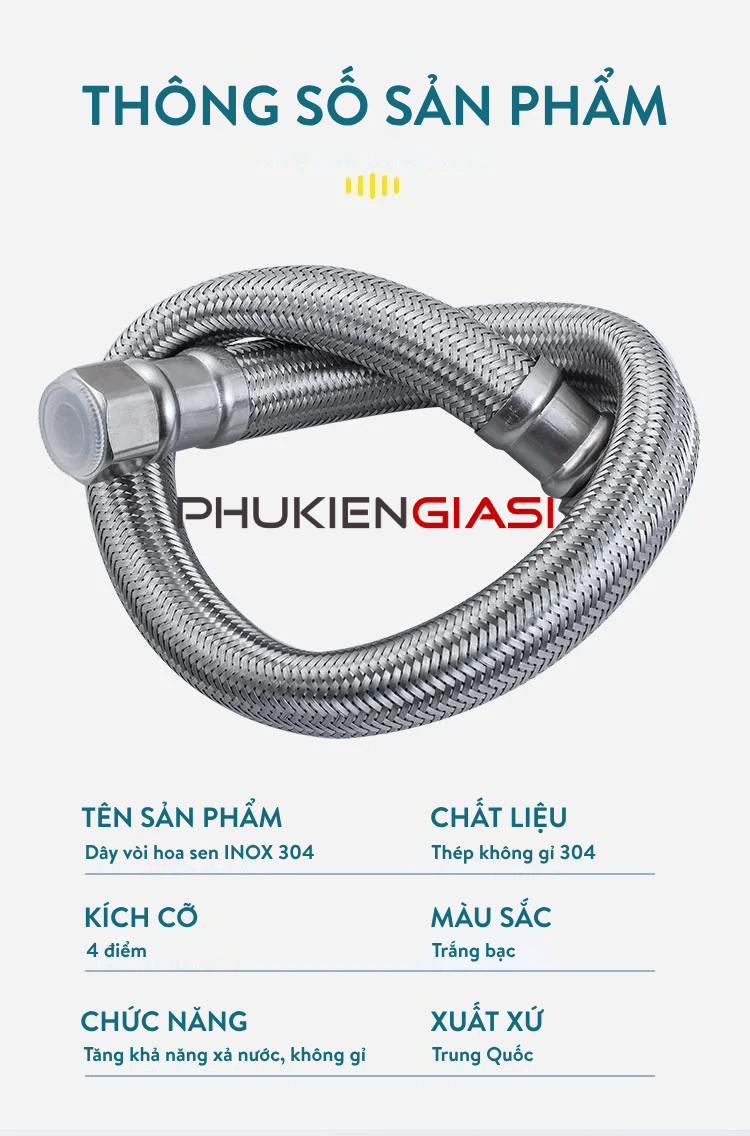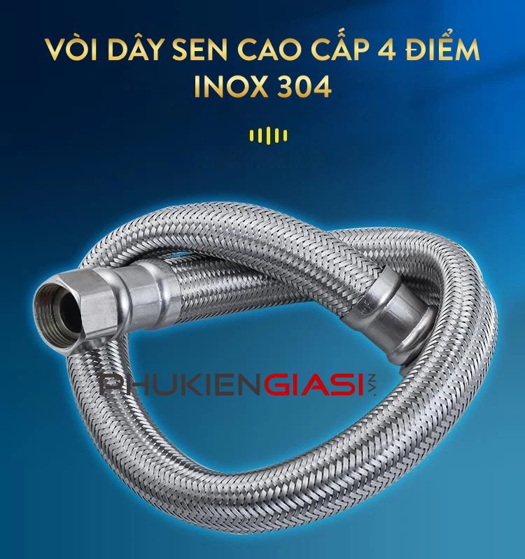 - Tên sản phẩm: Dây vòi hoa sen cao cấp 4 điểm INOX 304