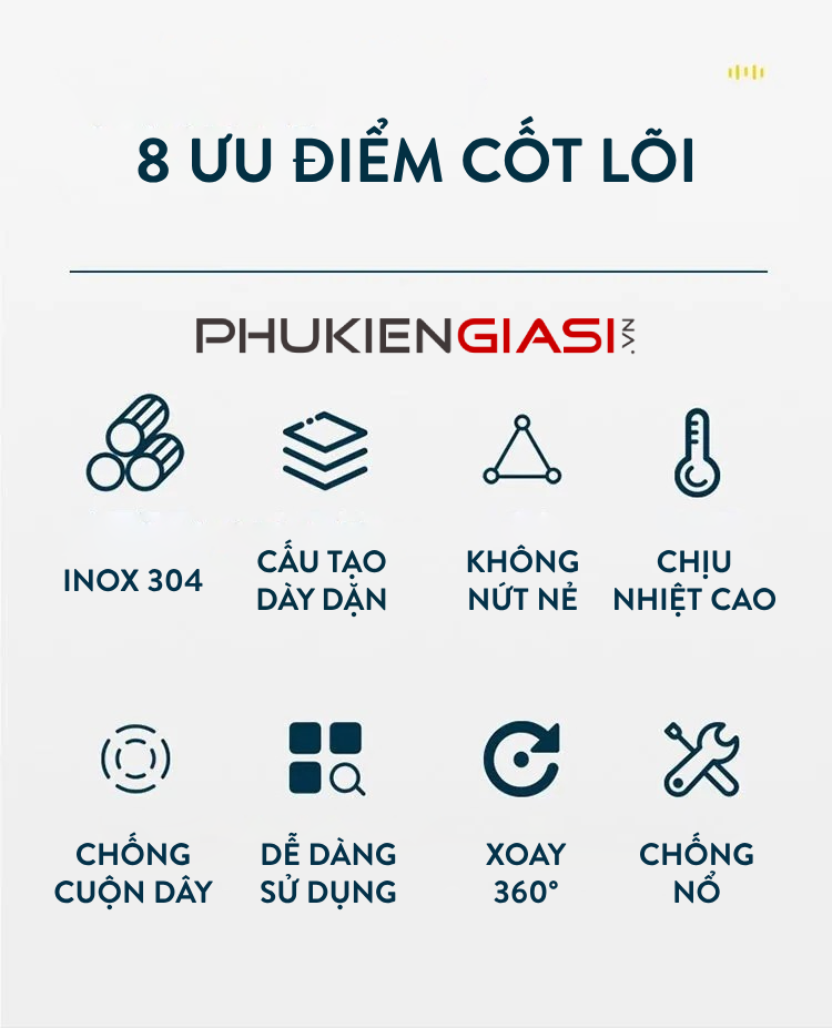 - Sản phẩm làm từ chất liệu INOX 304, đảm bảo không gỉ sét qua thời gian dài sử dụng