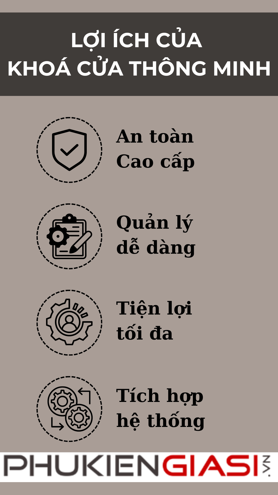 - Tiện Lợi Tối Đa: Không cần mang theo chìa khóa, bạn chỉ cần sử dụng dấu vân tay, mã PIN, hoặc smartphone để mở cửa, giúp giảm bớt rủi ro mất chìa khóa hoặc quên mang theo.