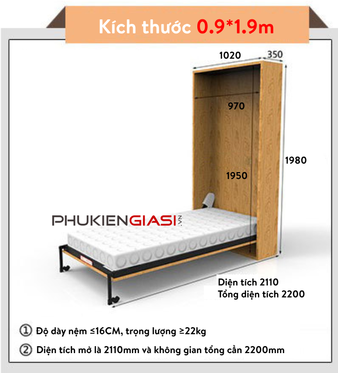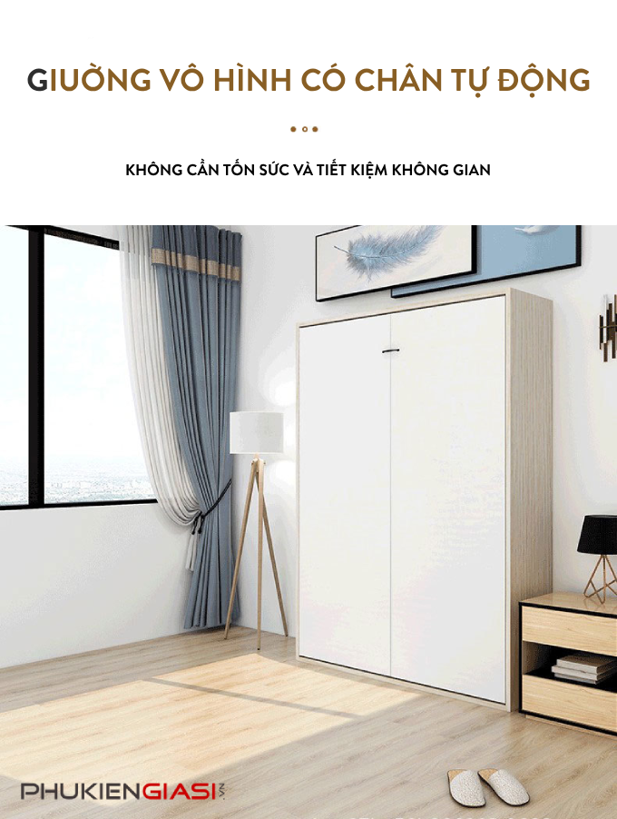 Giường có thể mở và đóng một cách nhẹ nhàng và nhanh chóng. Đảm bảo độ ổn định và an toàn, bộ phụ kiện này giúp bạn tối ưu hóa không gian sống mà không cần dùng lực.