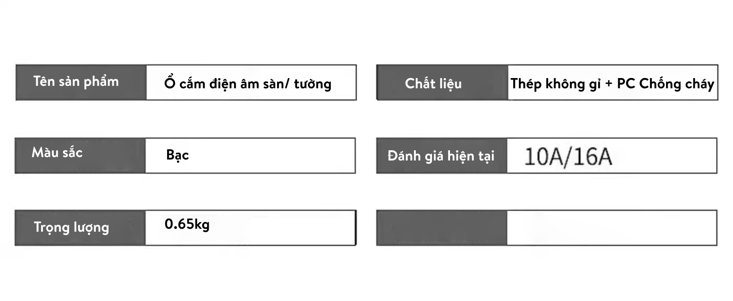 🔸 Tên sản phẩm: Ổ cắm điện âm sàn/tường