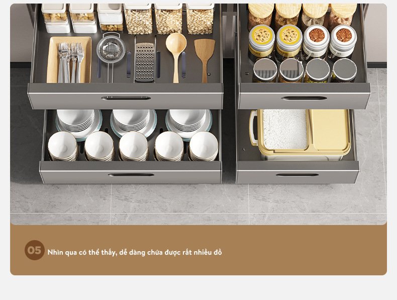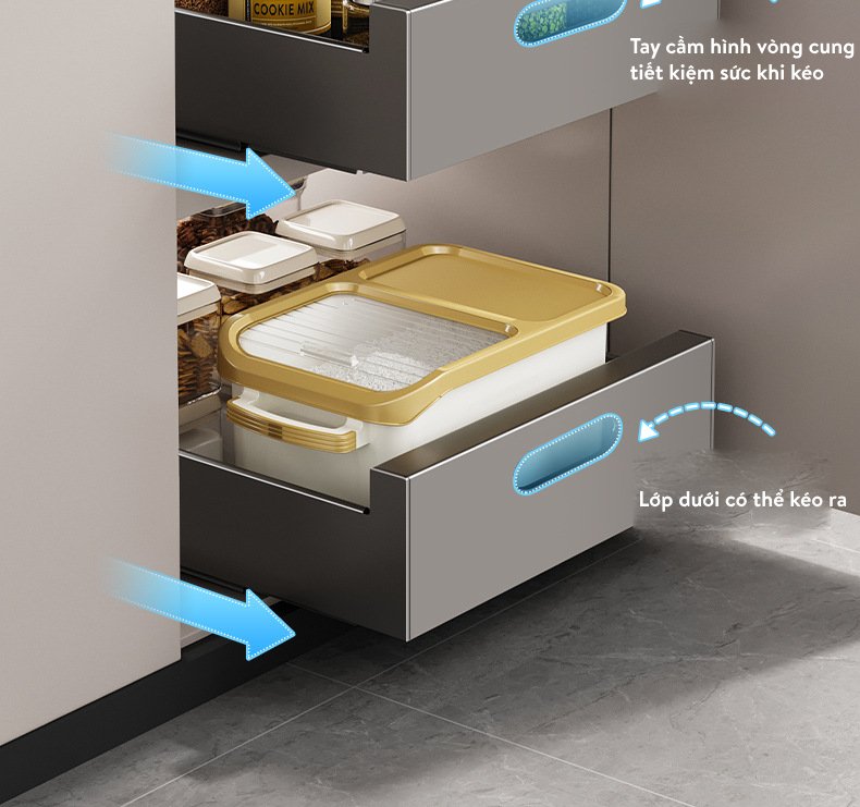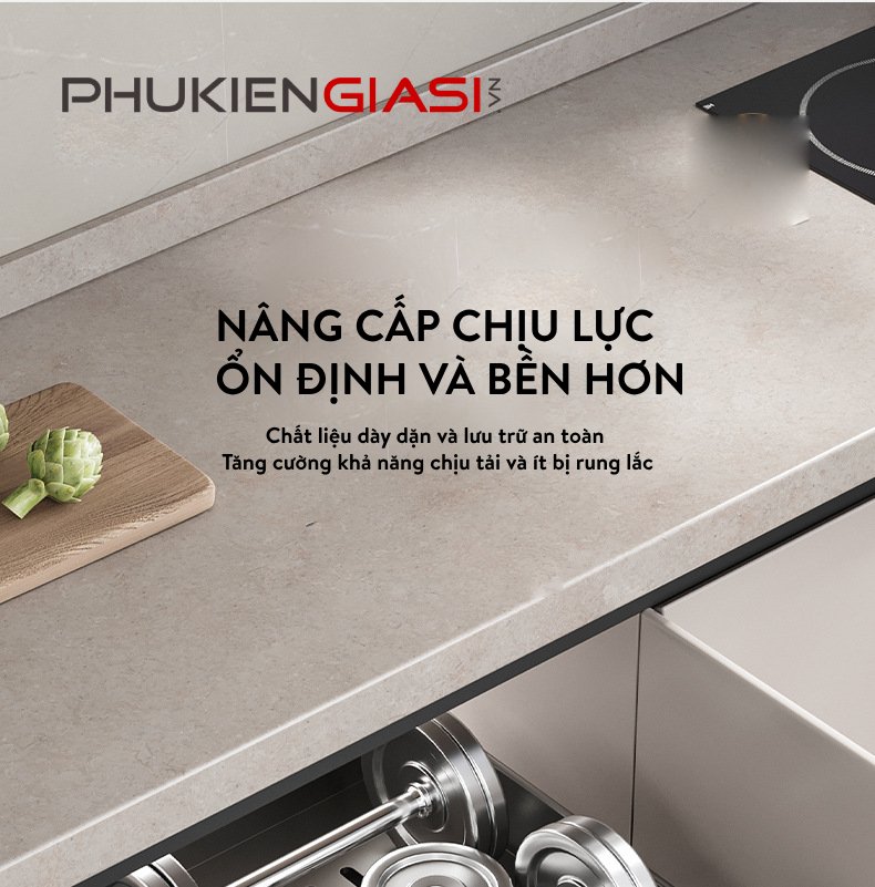 Với thiết kế tay cầm hình vòng cung, bạn sẽ cảm thấy dễ dàng hơn khi kéo và di chuyển khay, kệ. Điều này không chỉ tiết kiệm sức lực mà còn đảm bảo sự an toàn trong quá trình sử dụng. Chất liệu dày dặn giúp sản phẩm chịu lực tốt hơn, ổn định và bền bỉ theo thời gian.