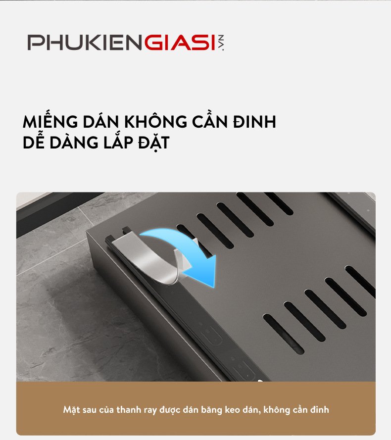 Sản phẩm được áp dụng công nghệ bề mặt sơn chất lượng cao, không chỉ mang lại vẻ đẹp sang trọng mà còn giúp bảo vệ bề mặt khỏi trầy xước và ẩm mốc. Đặc biệt, phương pháp cài đặt không đục lỗ mang đến sự tiện lợi và dễ dàng trong việc lắp đặt, tiết kiệm thời gian và công sức cho người sử dụng.