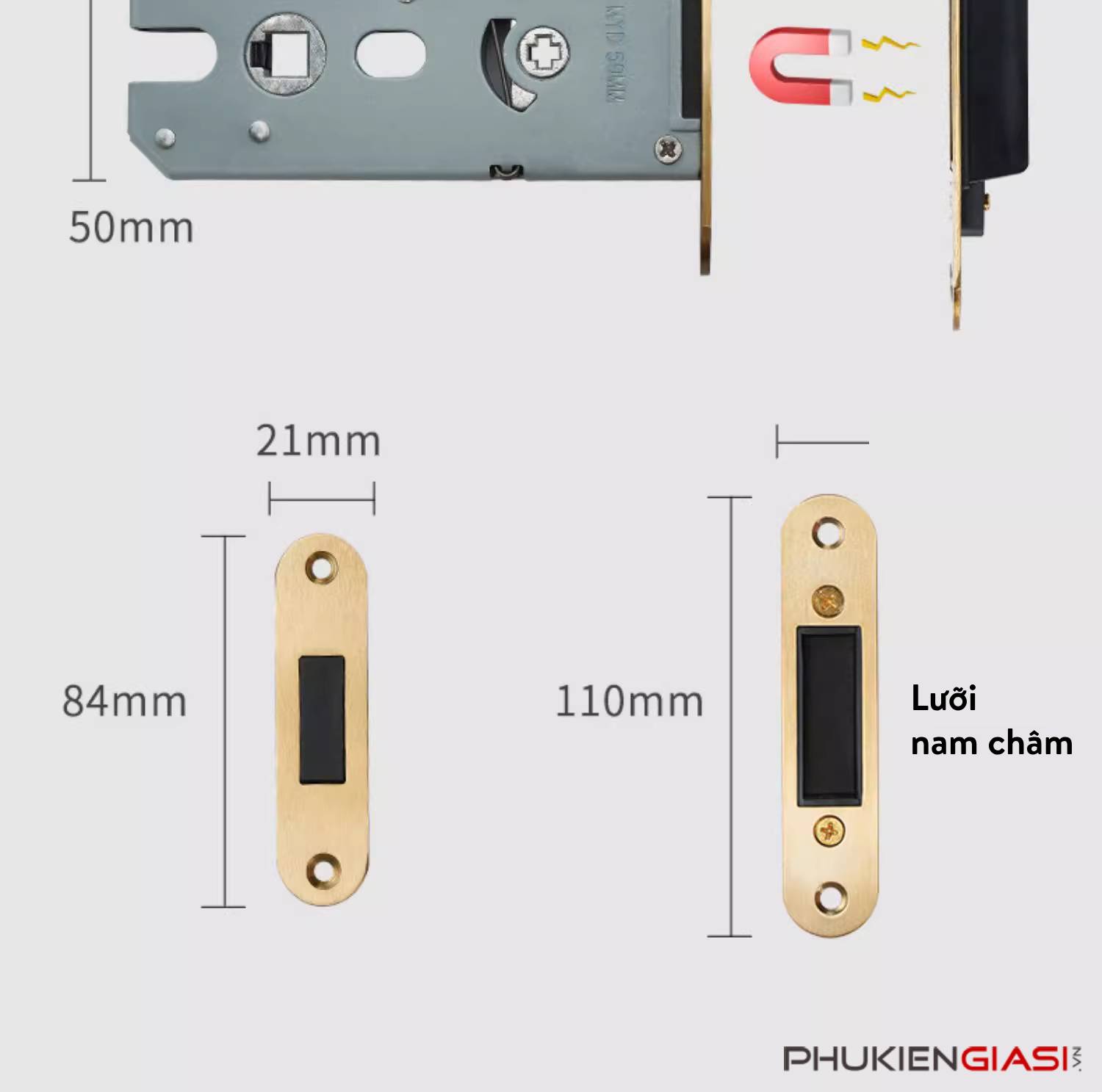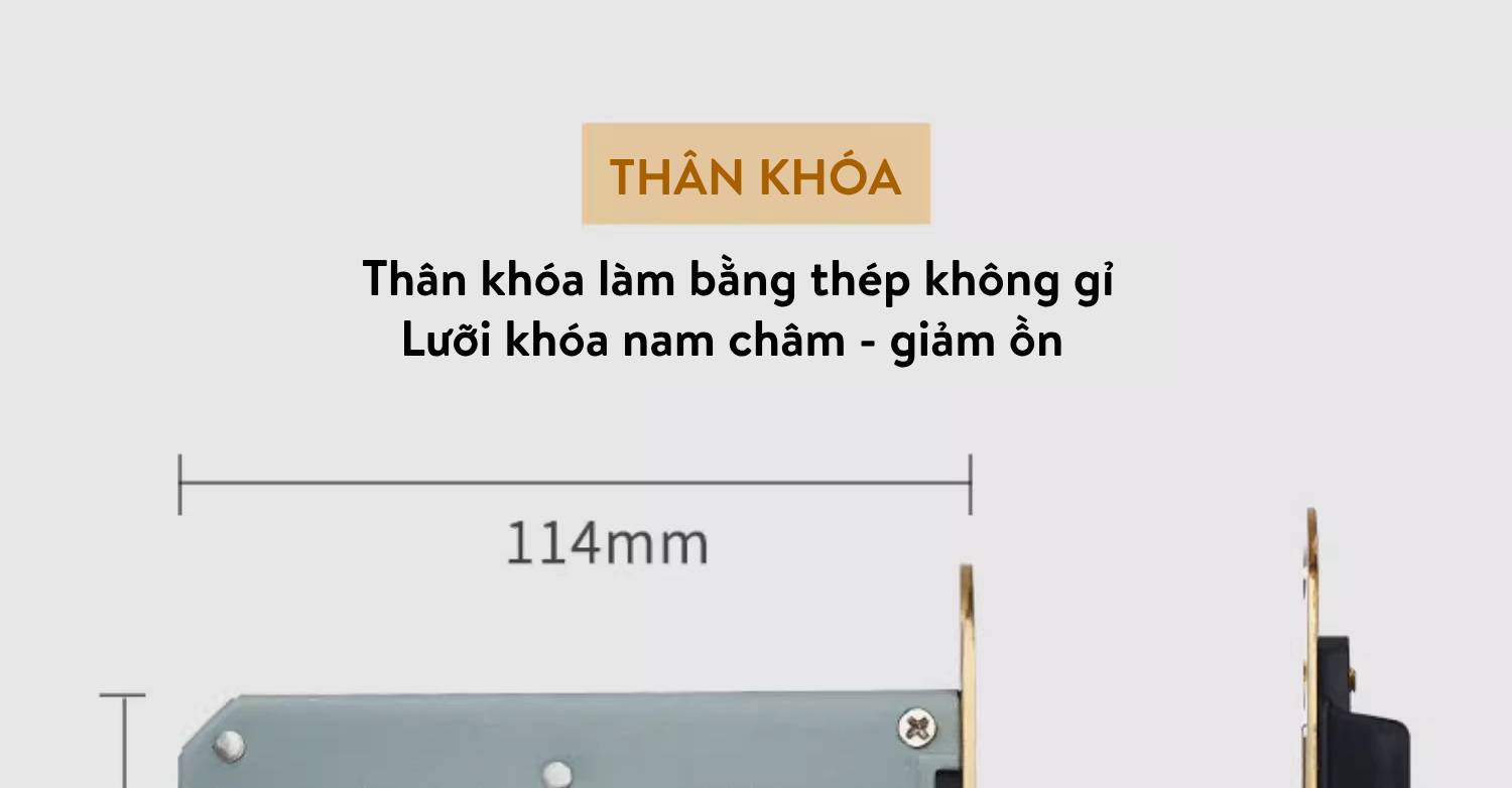 - Thân khóa: Thép không gỉ, thiết kế lưỡi khóa nam châm