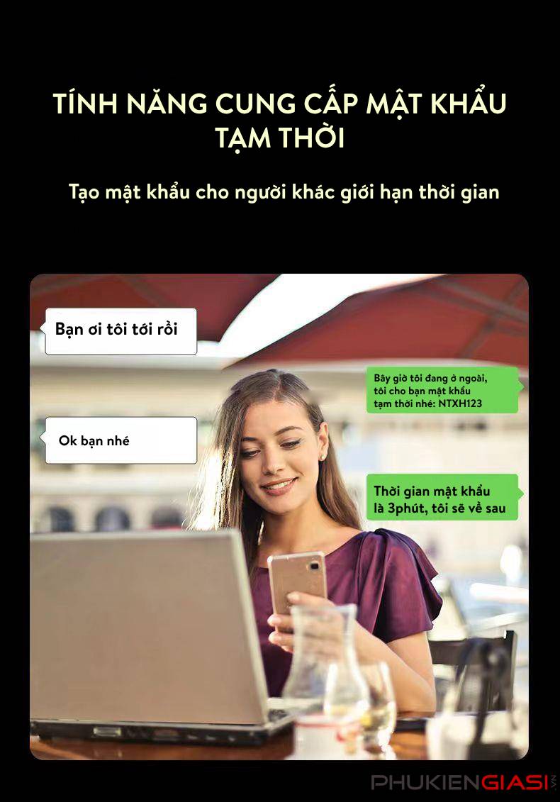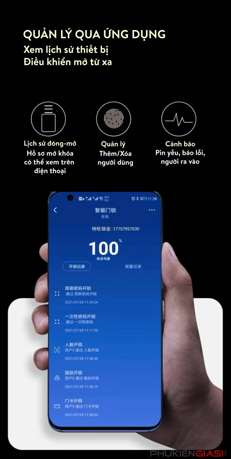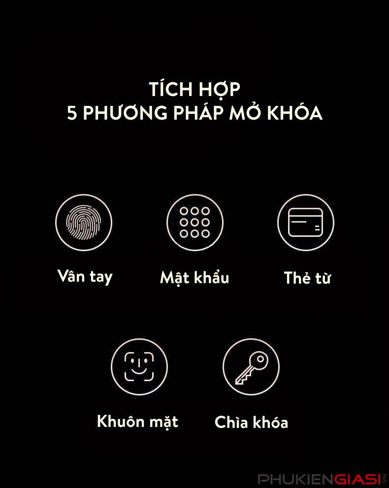 - Công Nghệ Bảo Mật: Vân tay/mật khẩu/thẻ từ/nhận diện khuôn mặt/mở từ xa bằng điện thoại của bạn