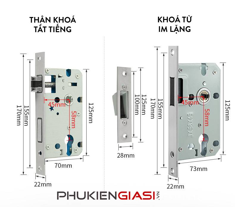 - Khoảng cách từ khoá đến ổ khoá: 58mm