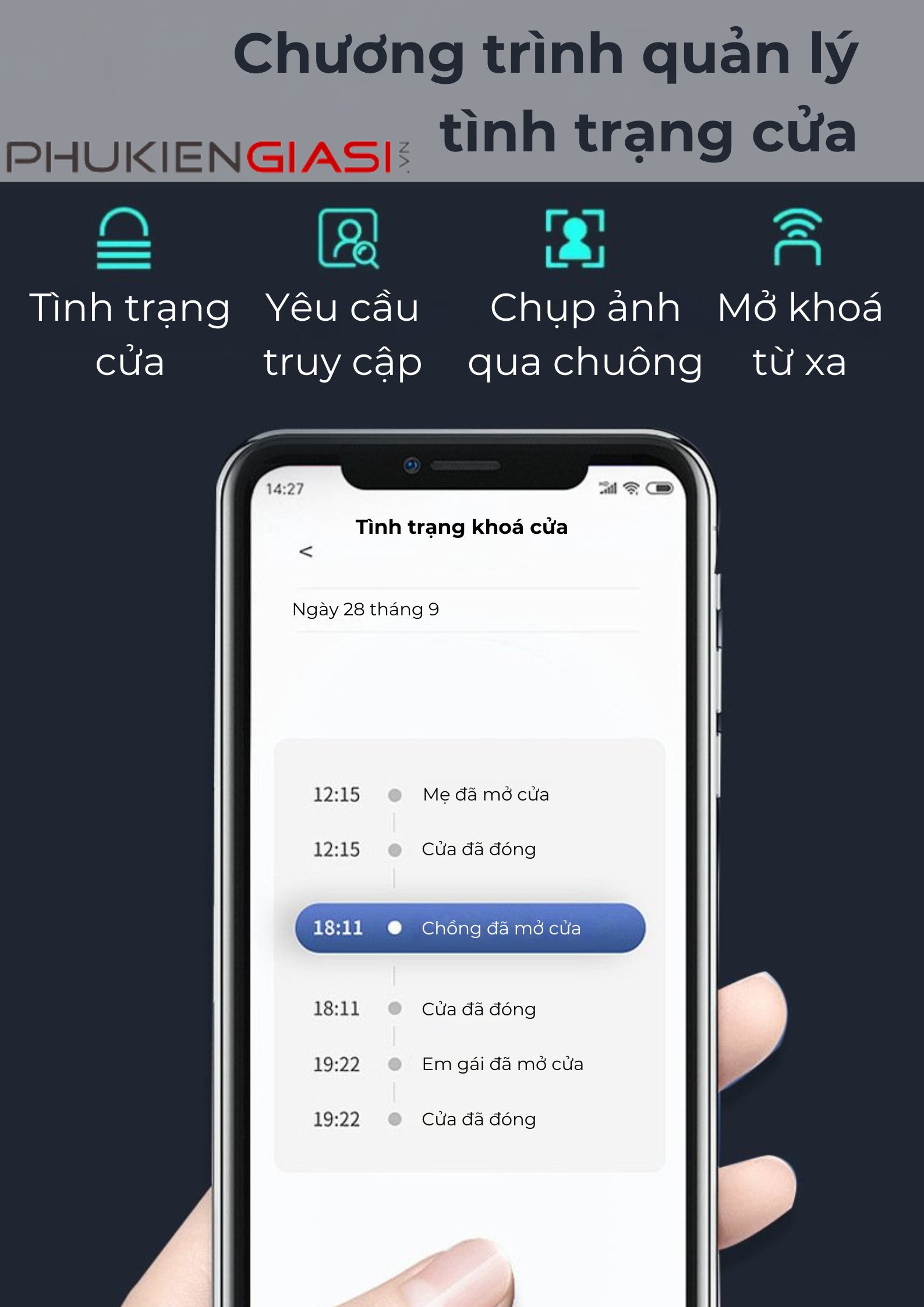 - Quản lý tình trạng mở khoá từ xa thông qua ứng dụng Wechat.