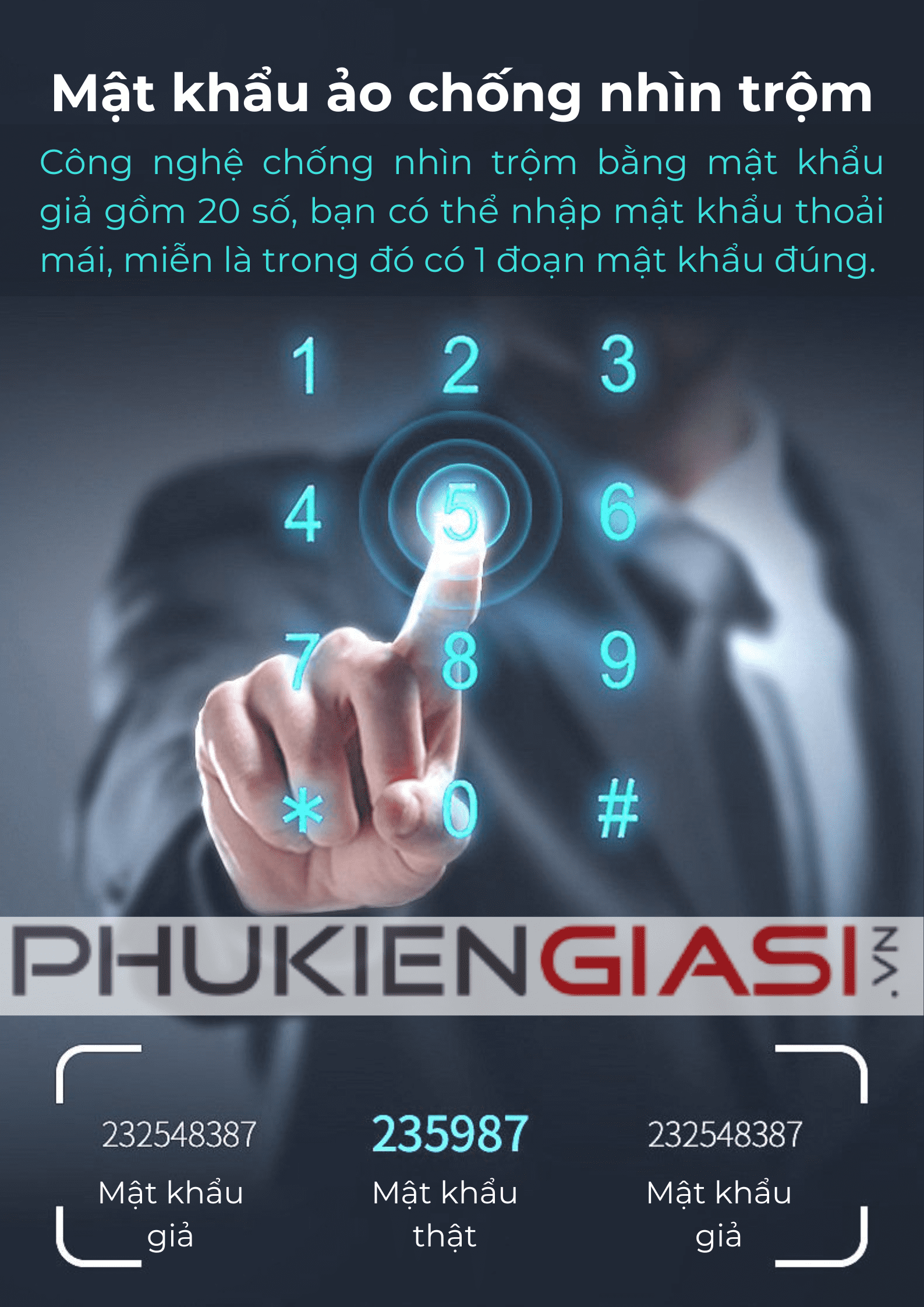 - Có chức năng mật khẩu ảo chống nhìn trộm.