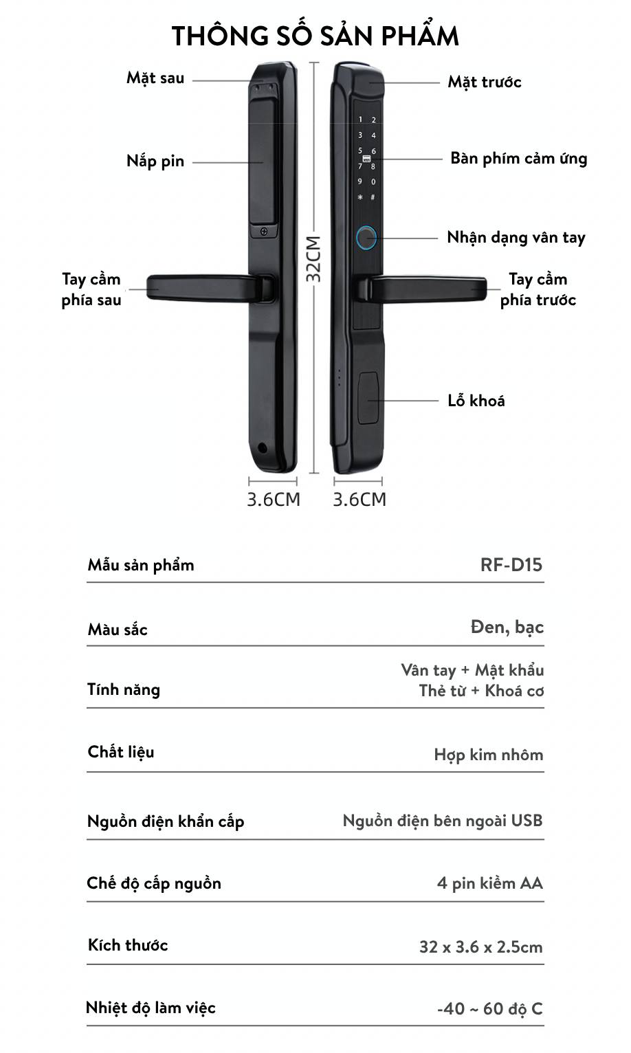 🔹 Tính năng: Vân tay + Mật khẩu, Thẻ từ + Khoá cơ