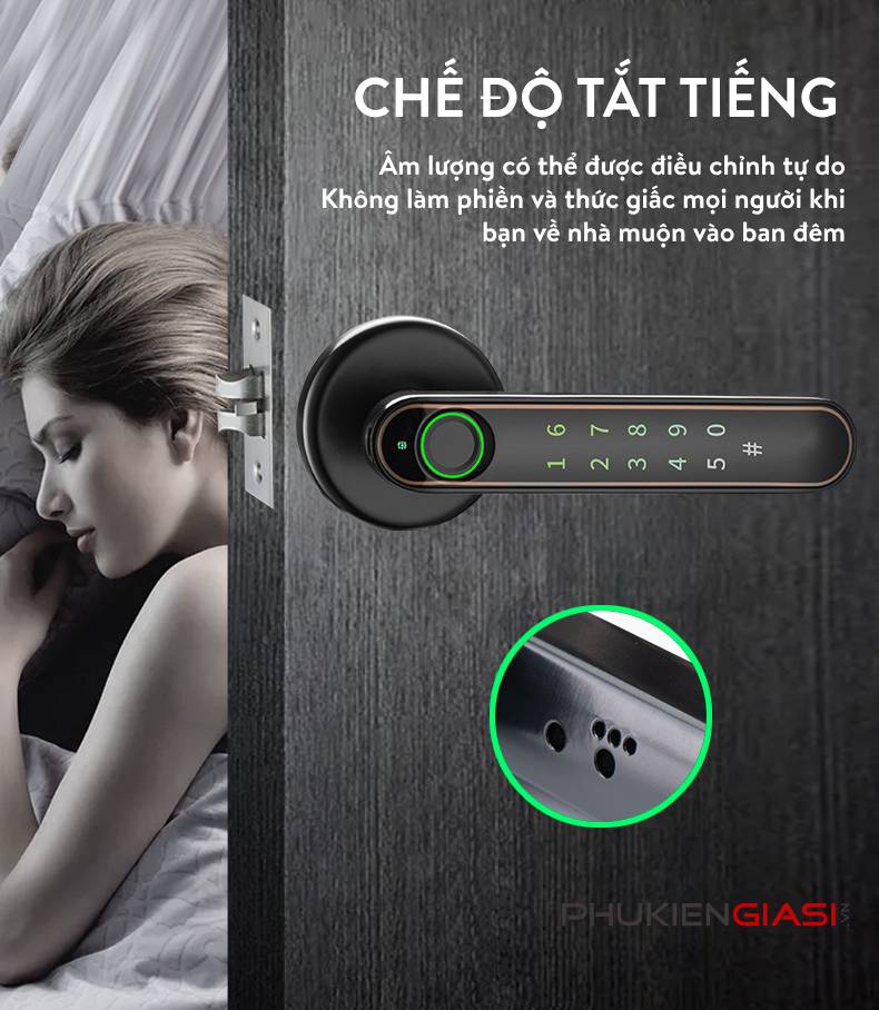 🔹 Khoá cửa có tính năng tắt tiếng, giảm tiếng ồn cho bạn không gian sống yên tĩnh và kín đáo