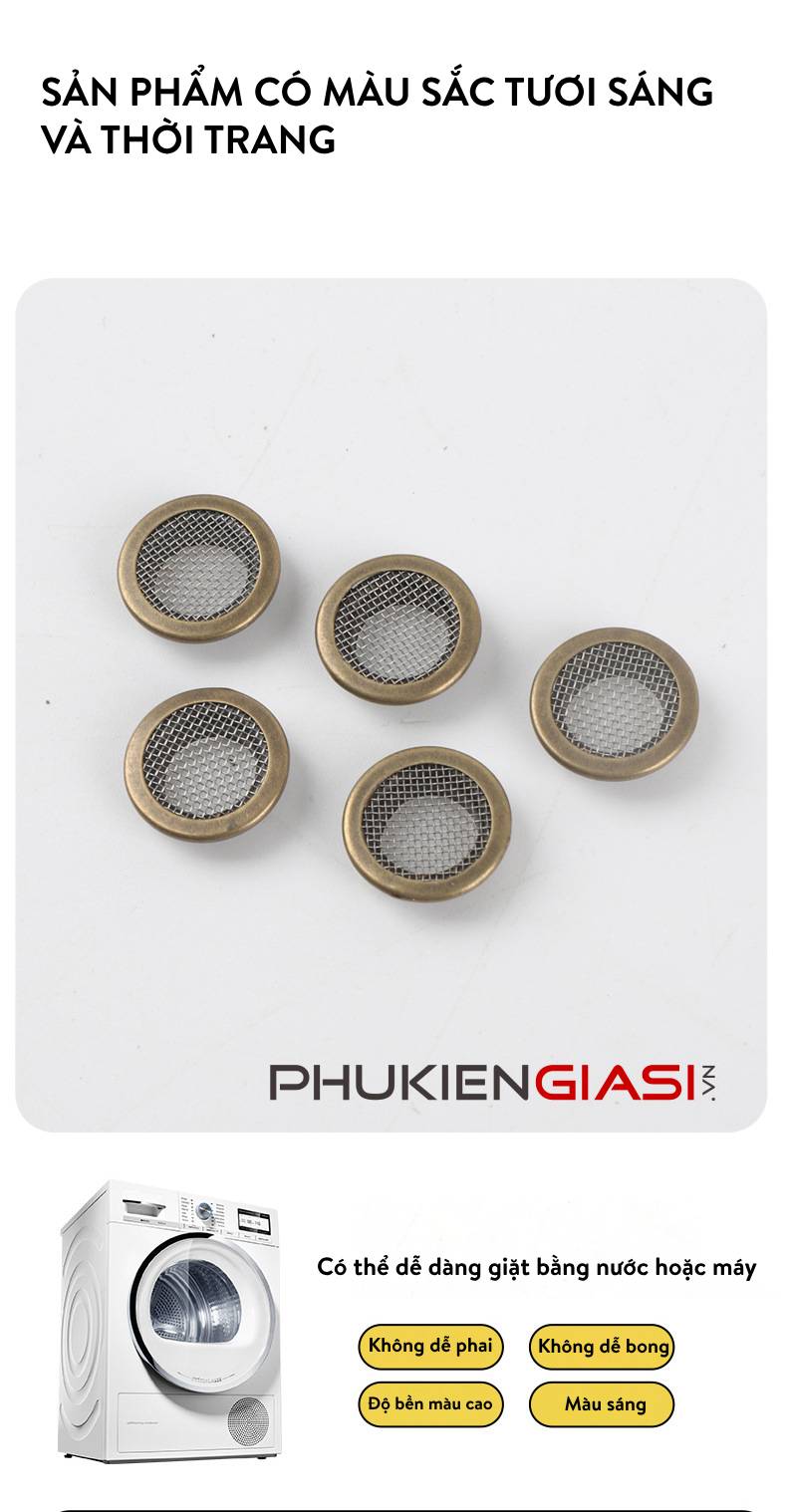- Hình dạng: Thường có hình tròn hoặc oval, với lỗ ở giữa để xỏ dây hoặc có lưới