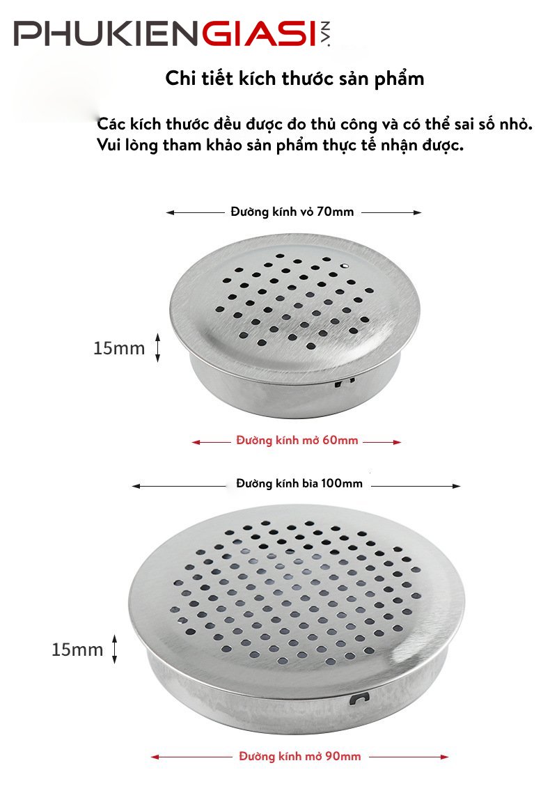 Sản phẩm có nhiều kích thước khác nhau, phổ biến từ 70mm đến 100mm (tùy loại), phù hợp để sử dụng trong các không gian lớn nhỏ, từ tủ cá nhân đến hệ thống thông gió công nghiệp.