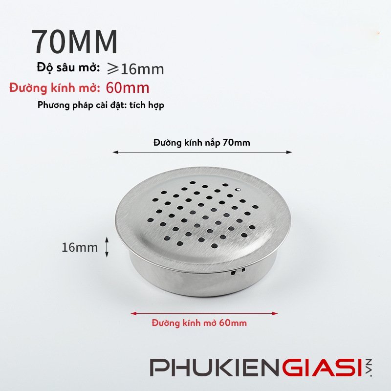 Lỗ thông gió được làm từ thép không gỉ, mang lại khả năng chống ăn mòn và bền bỉ trong mọi điều kiện môi trường, kể cả những nơi có độ ẩm cao. Bề mặt inox sáng bóng không chỉ gia tăng tính thẩm mỹ mà còn dễ dàng lau chùi, đảm bảo sản phẩm luôn giữ được vẻ ngoài sạch đẹp.