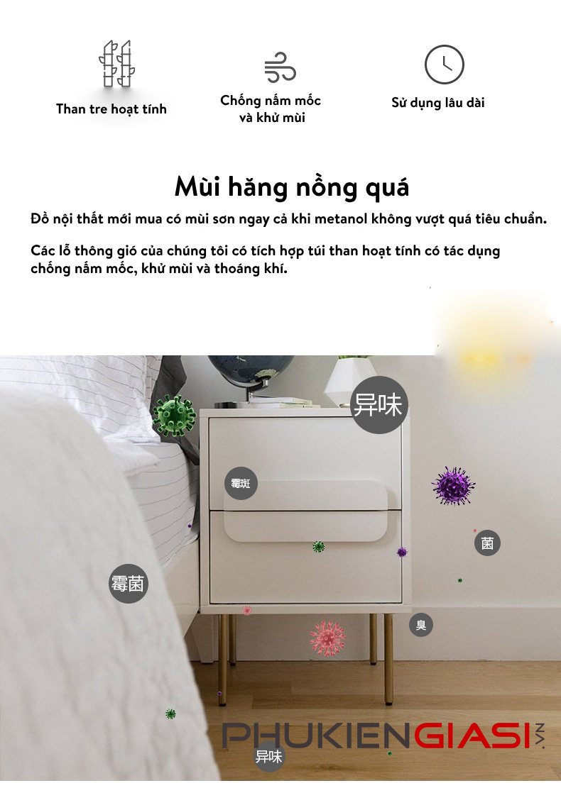 - Chống ẩm mốc: Hộp than hoạt tính và lưới thông khí giúp ngăn ngừa nấm mốc và bảo vệ không gian sử dụng.