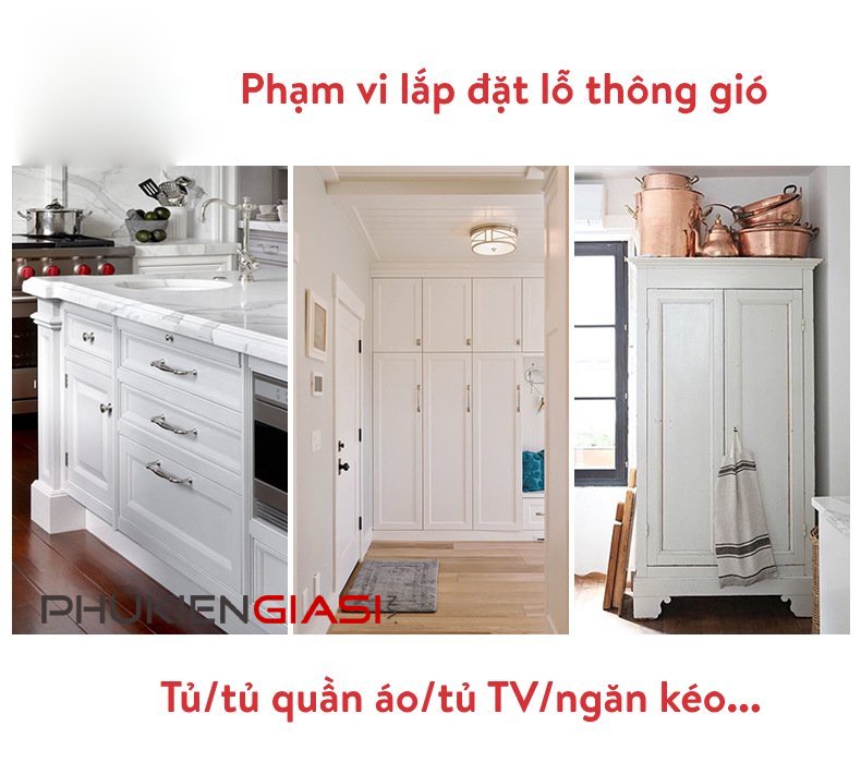 - Tủ bếp: Hỗ trợ lưu thông không khí, ngăn ngừa nấm mốc và bảo vệ thực phẩm khô.