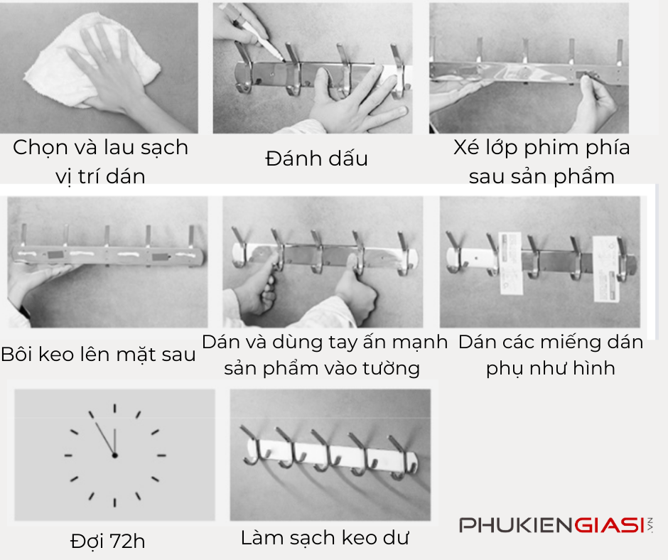 - Dễ dàng lắp đặt bằng cách dán vào tường bằng keo dán nhập khẩu mà không cần phải khoan tường, sắp xếp trở nên linh động hơn.