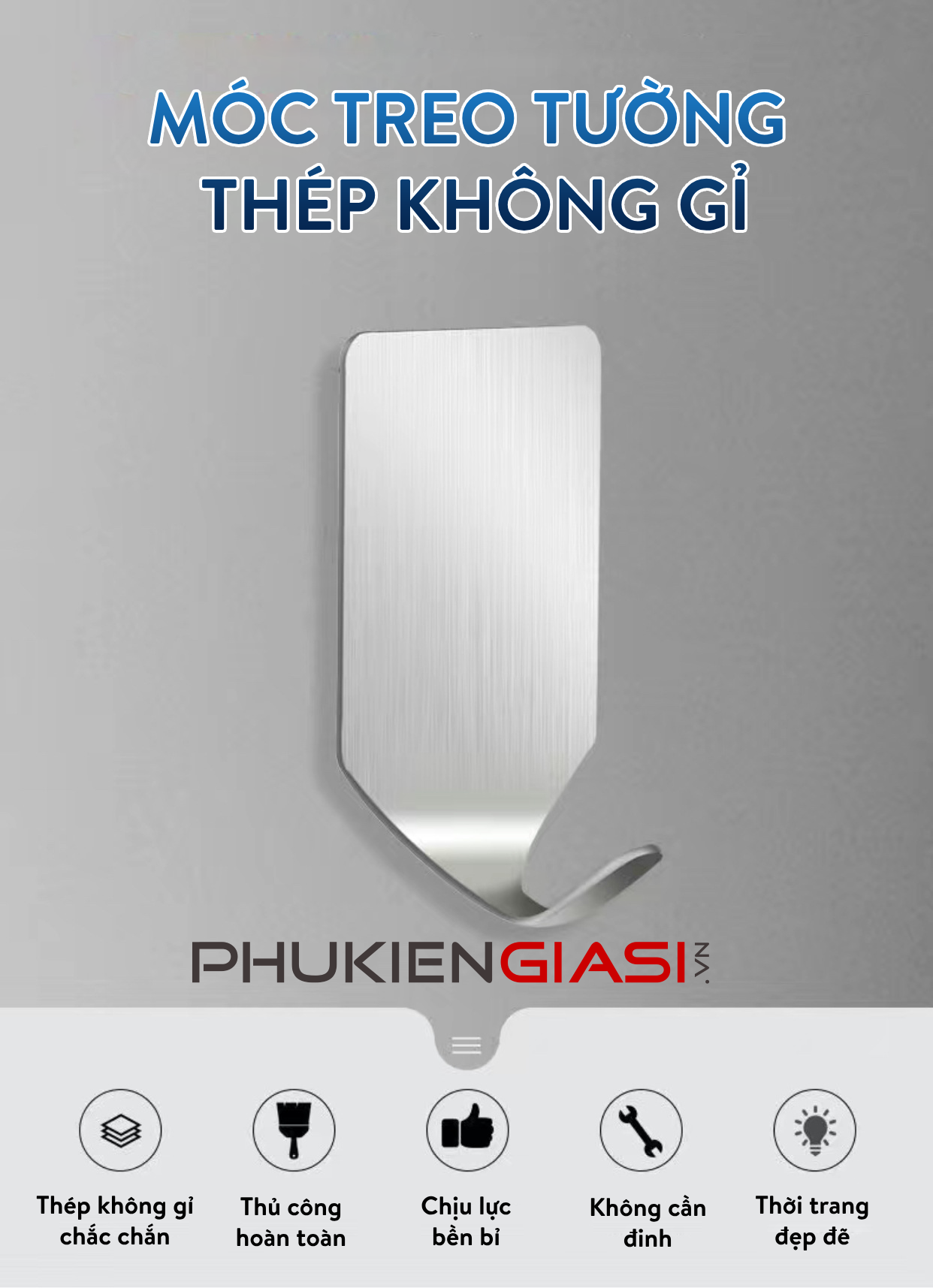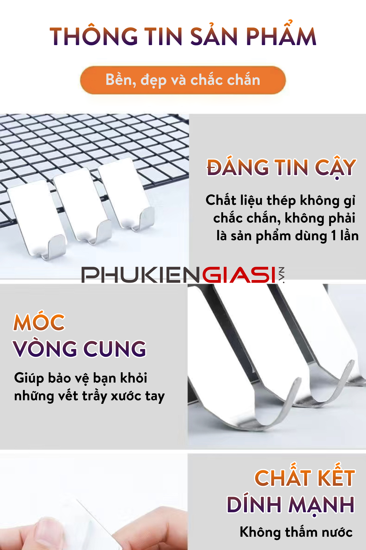 - Chất liệu thép không gỉ: Giúp chống oxi hóa, chịu nhiệt và chống gỉ sét. Đảm bảo móc treo có độ bền cao và sử dụng trong thời gian dài mà không bị hư hỏng.