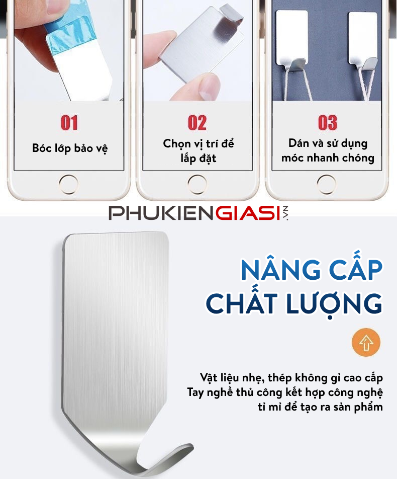 - Dễ dàng sử dụng và di chuyển: Bạn có thể dễ dàng gỡ móc treo đồ ra và di chuyển nó sang một vị trí mới mà không để lại dấu vết hoặc hư hỏng cho bề mặt.