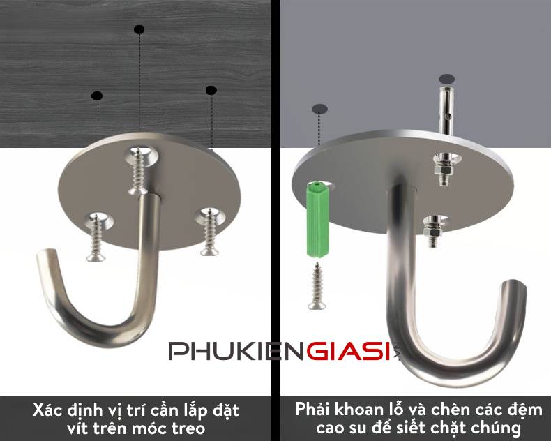🔹 Thích hợp để: Treo đồ, thớt, quạt trần, đèn LED, đồ trang trí..