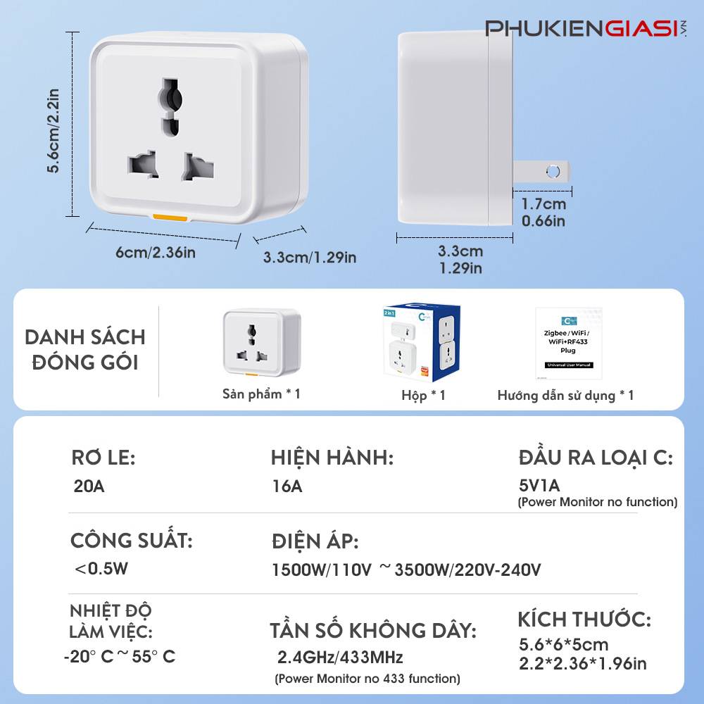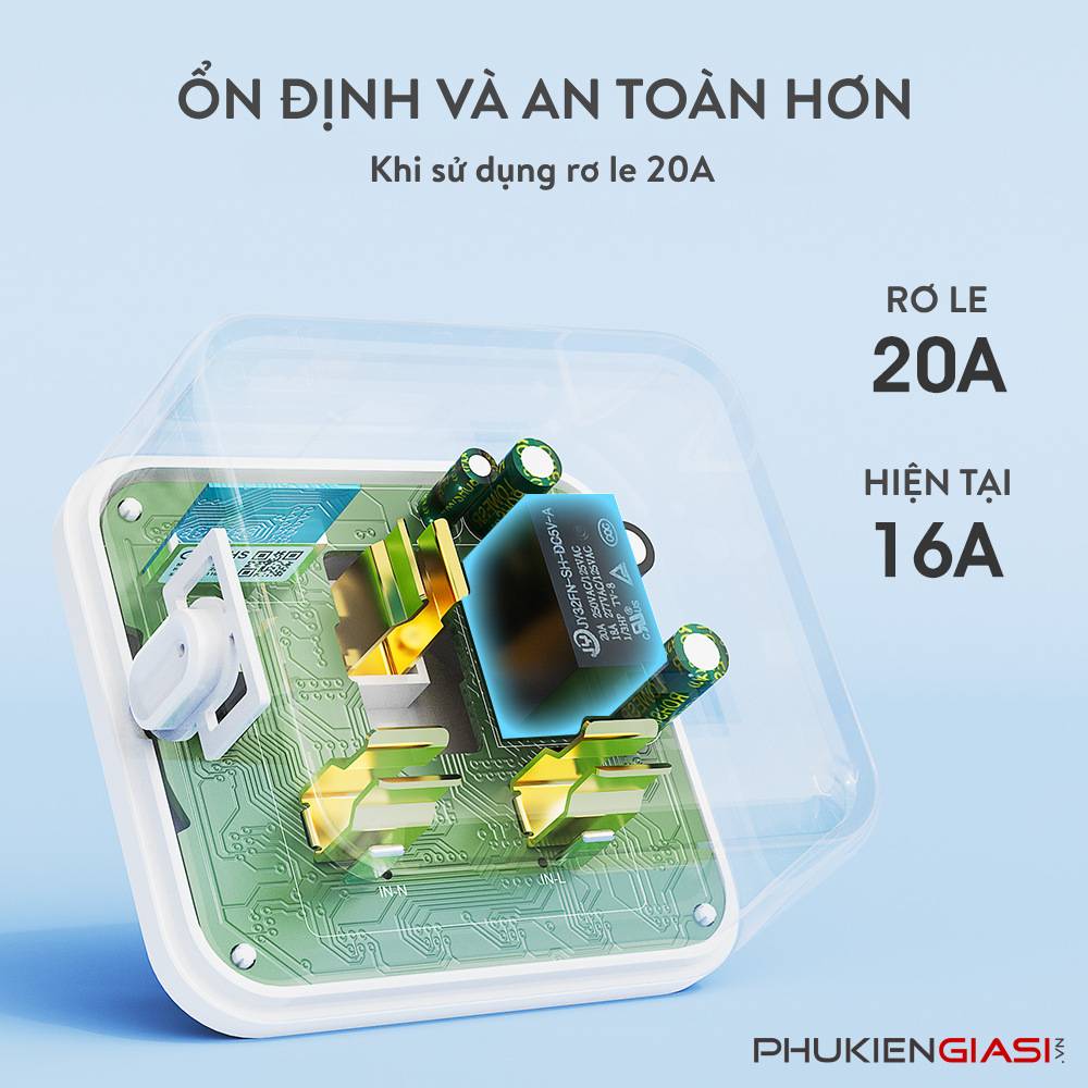 - Công suất 16A: Đáp ứng nhu cầu sử dụng của hầu hết các thiết bị điện công suất cao.
