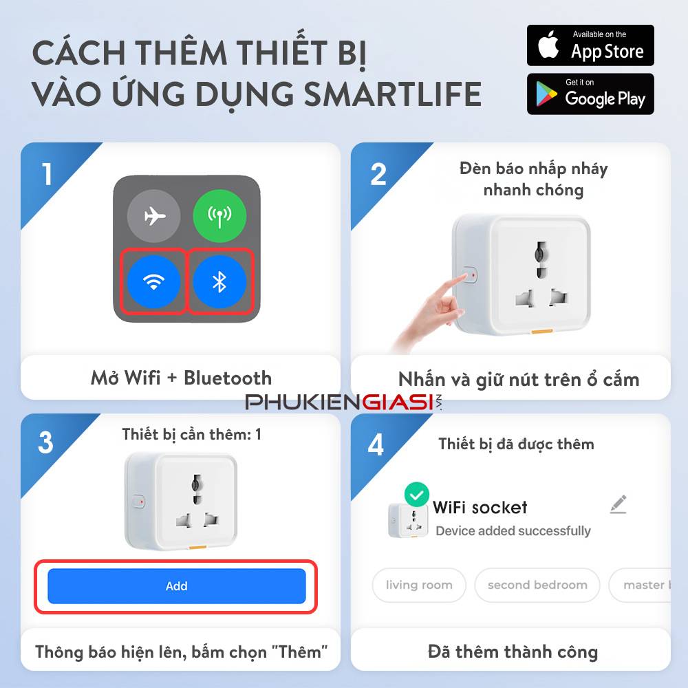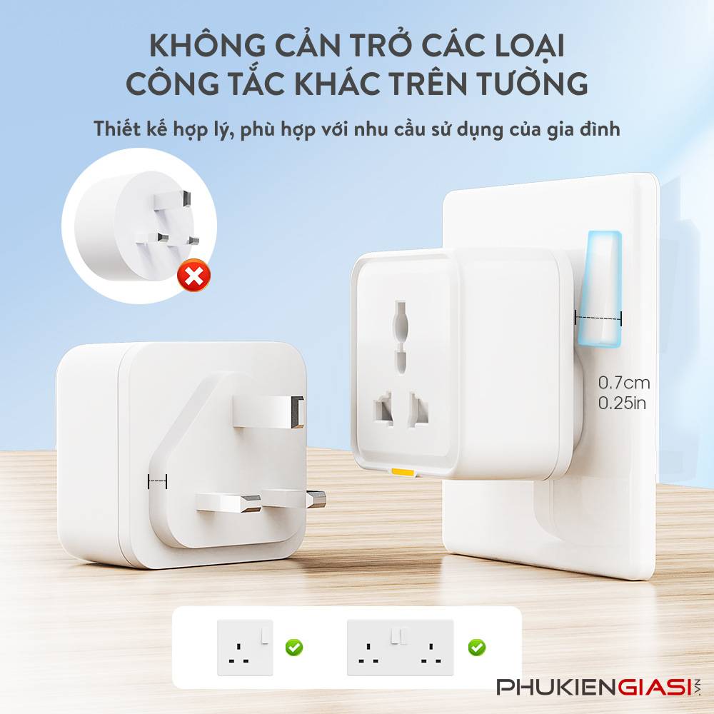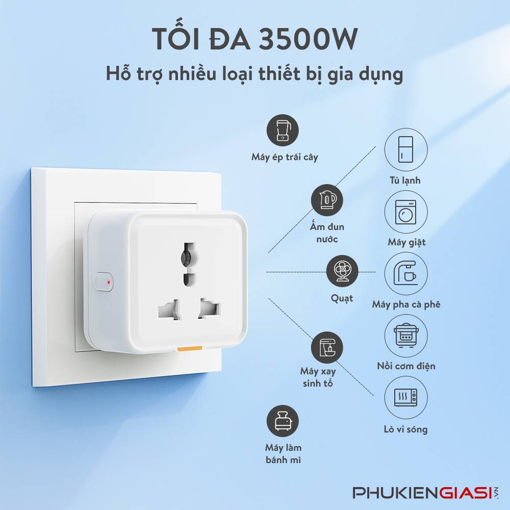 - Điều khiển giọng nói: Tương thích với Amazon Echo và Google Home, cho phép bật/tắt thiết bị dễ dàng.