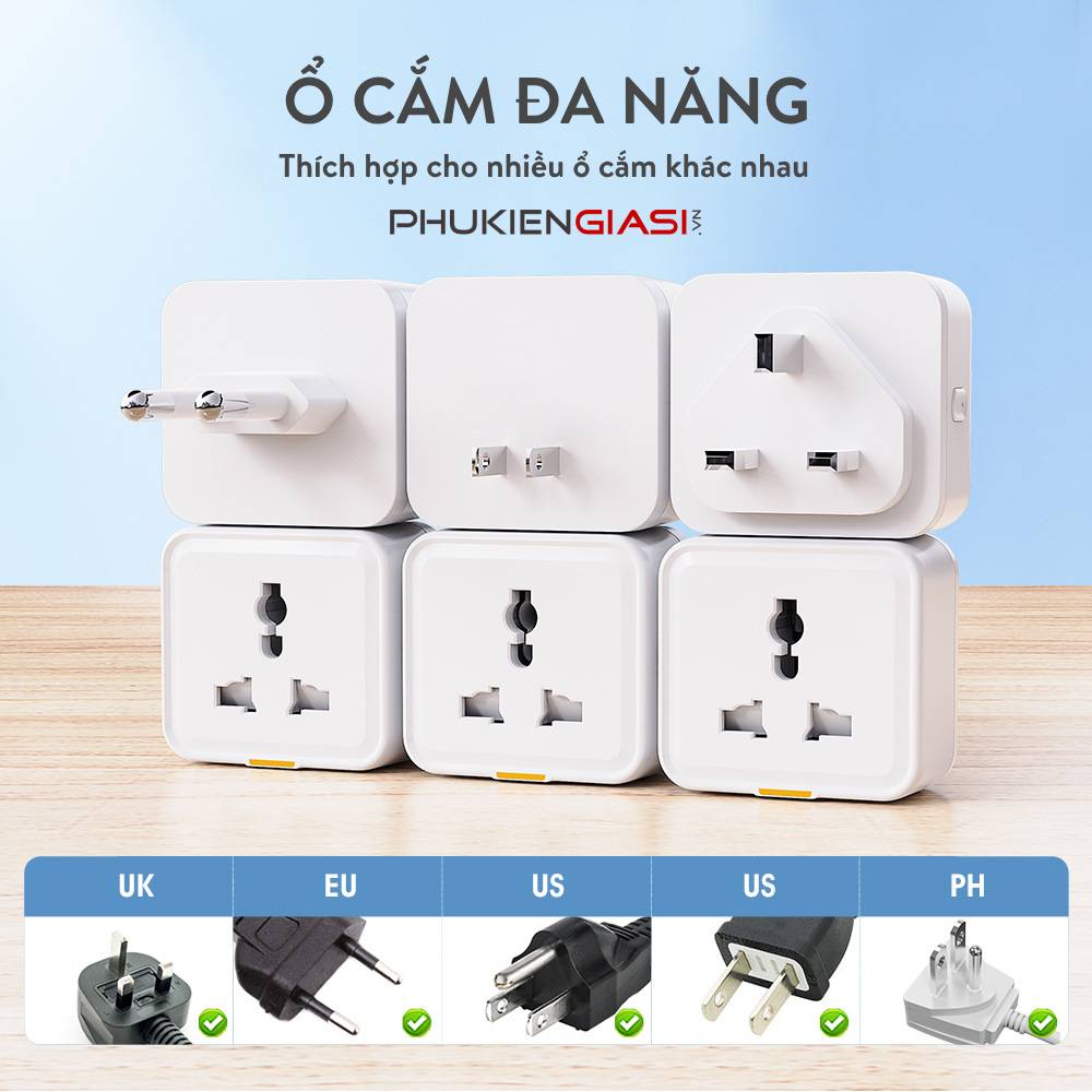 Ổ cắm thông minh WiFi Tuya SmartLife là giải pháp hiện đại giúp bạn điều khiển thiết bị điện từ xa bằng giọng nói và ứng dụng di động. Tích hợp trợ lý ảo như Google Assistant, Alexa, ổ cắm cho phép bật/tắt thiết bị dễ dàng, hẹn giờ linh hoạt và tiết kiệm năng lượng. Thiết kế đa năng tương thích với chuẩn phích cắm UK, EU, US, phù hợp cho nhiều không gian sử dụng.