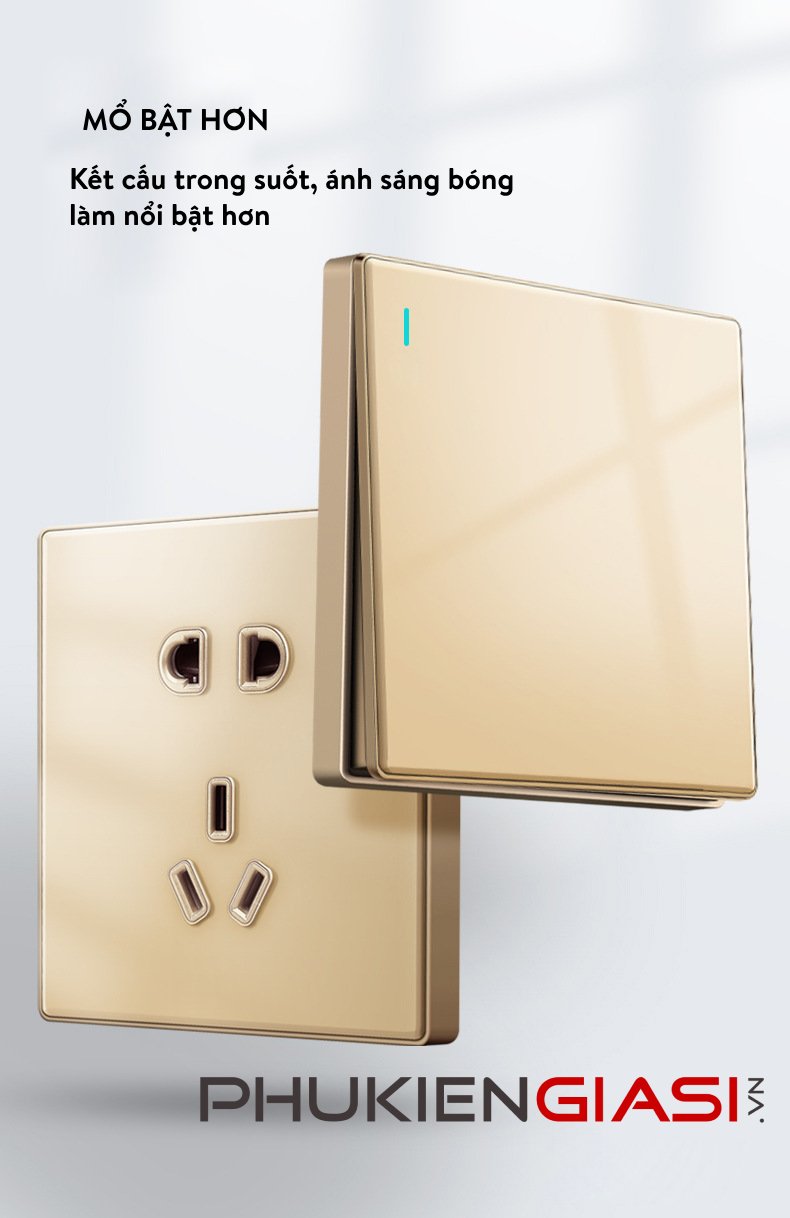 Với kiểu dáng sang trọng và hiện đại, ổ cắm tường này phù hợp với mọi không gian sống và làm việc. Thiết kế gọn nhẹ giúp dễ dàng lắp đặt và không chiếm nhiều diện tích.